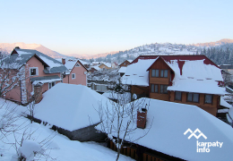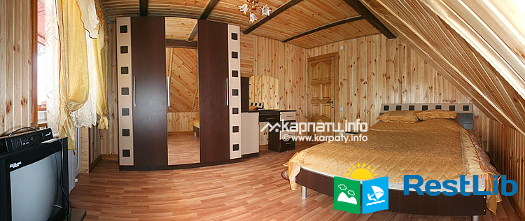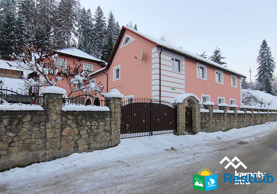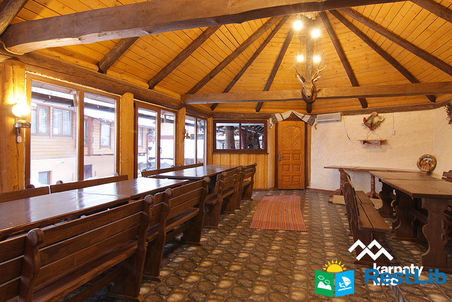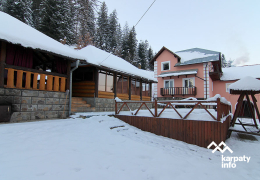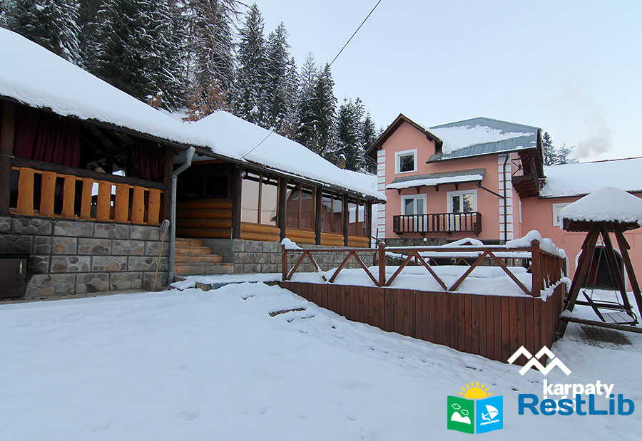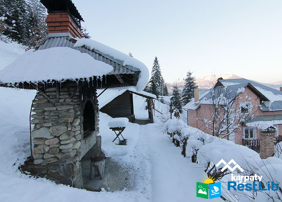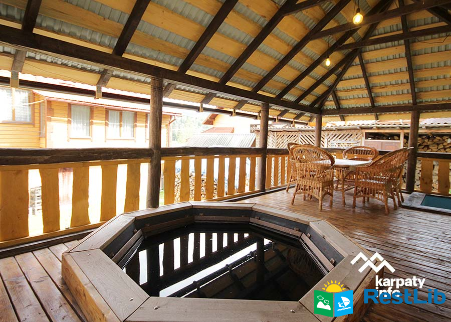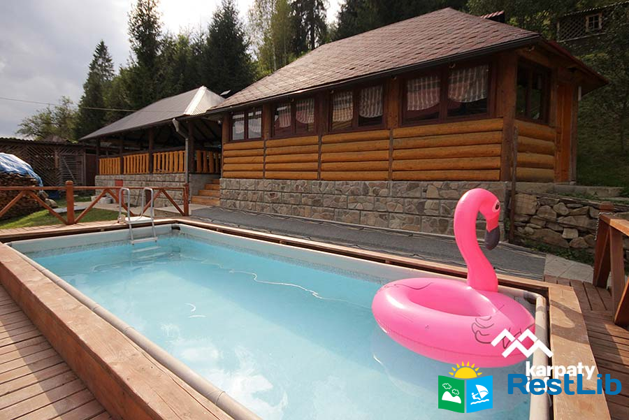 На облаштованій території дитячий майданчик, зона барбекю, колиба, сауна, чан, басейн, парковка.