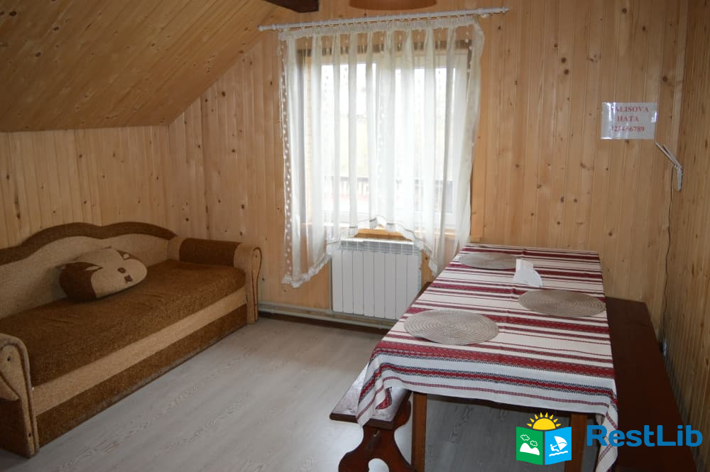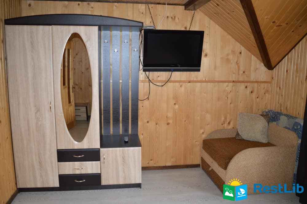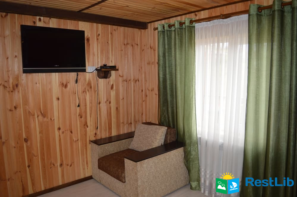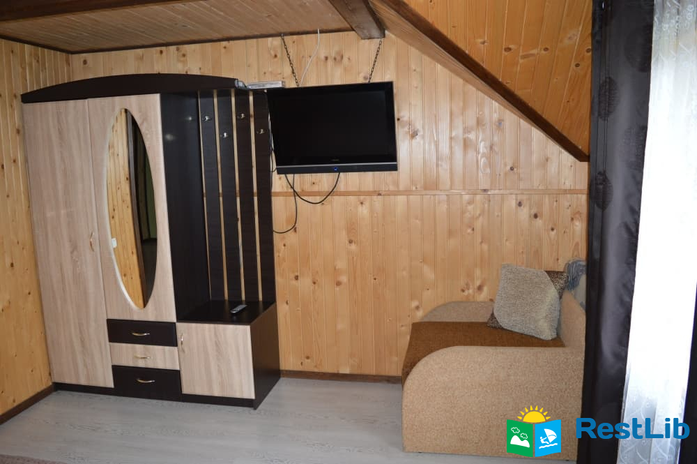 Пропонується три (двомісні +1) номери. В кожній кімнаті: зруні двоспальні ліжка, розкладне крісло, шафа, приліжкові тумби, телевізор.