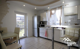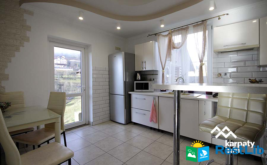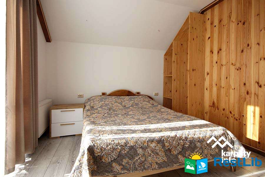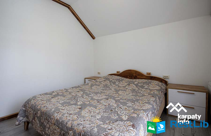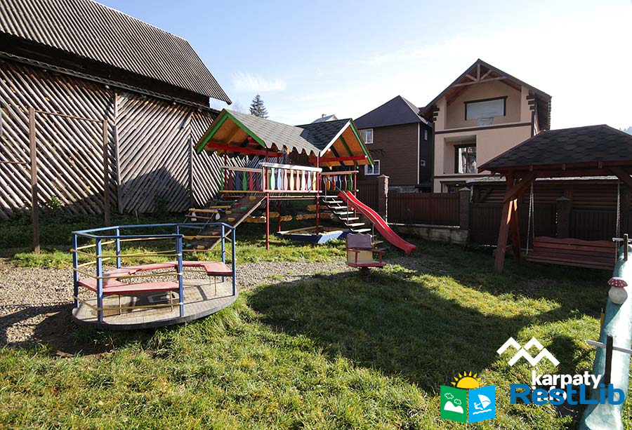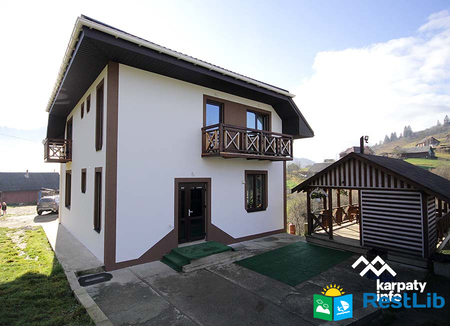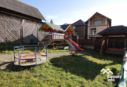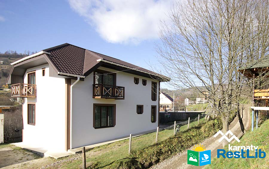 Двоповерховий котедж на 10-12 місць. На території є альтанка, мангал, гойдалка, батут, відкритий басейн.