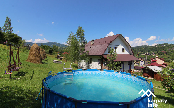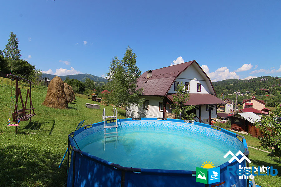 Триповерховий будинок на 20 осіб. На території є альтанки, мангал, гойдалка, літній басейн, місце для парковки.