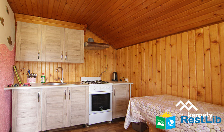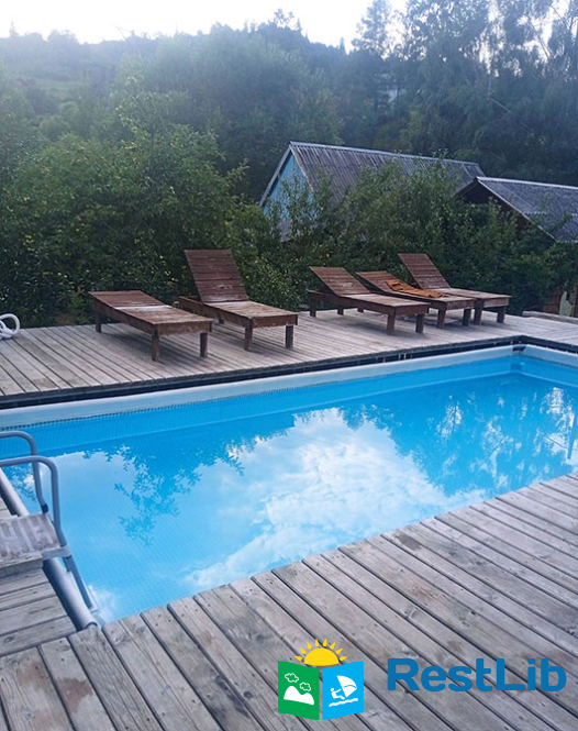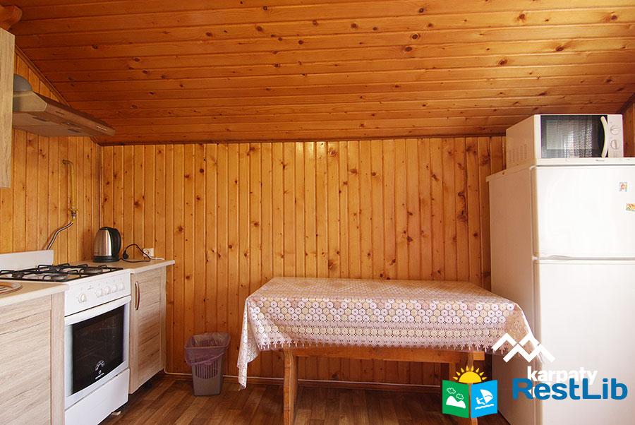 На території розташований триповерховий котедж на 8 осіб, альтанки з мангалами, дитячий майданчик, літній басейн.