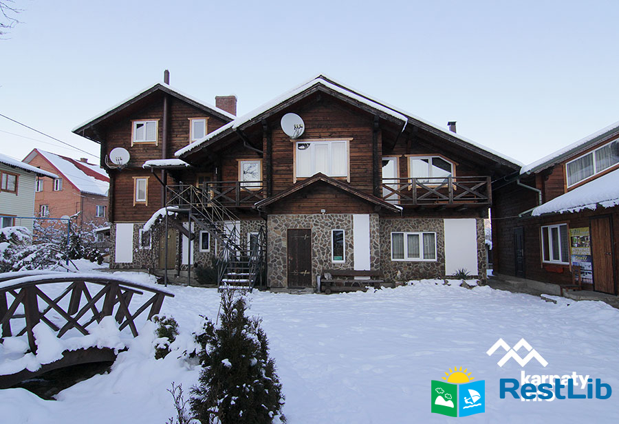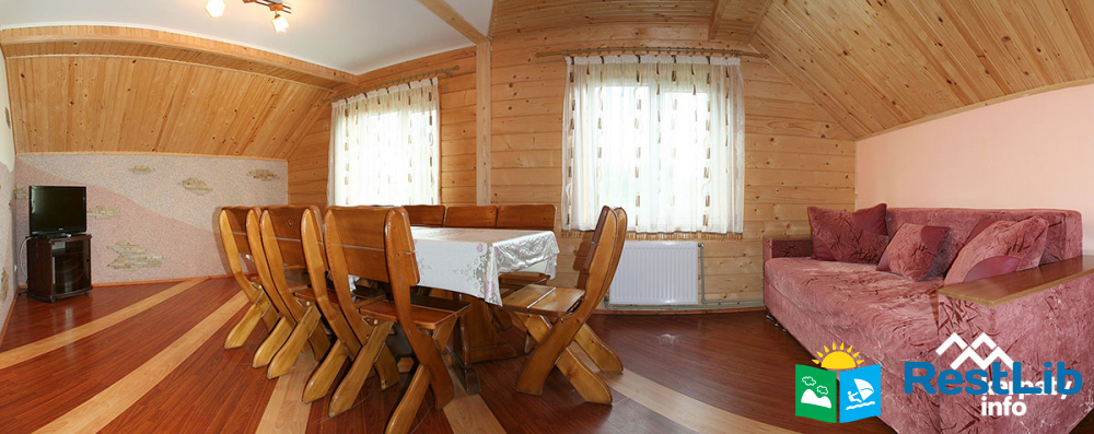 На території знаходиться триповерховий котедж, який здається окремими поверхами. Також є двоповерховий будинок з обіднім залом, в якому здається другий поверх.