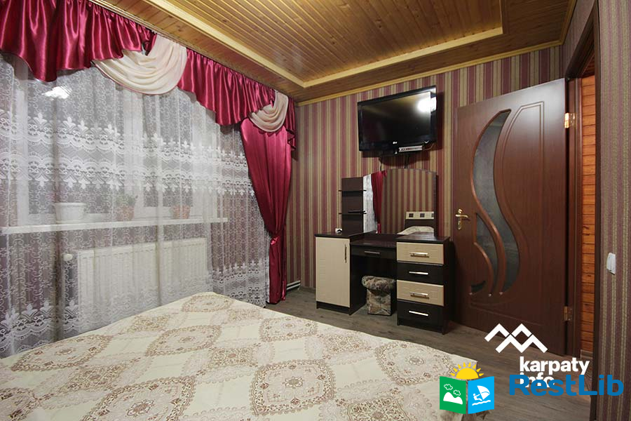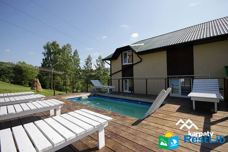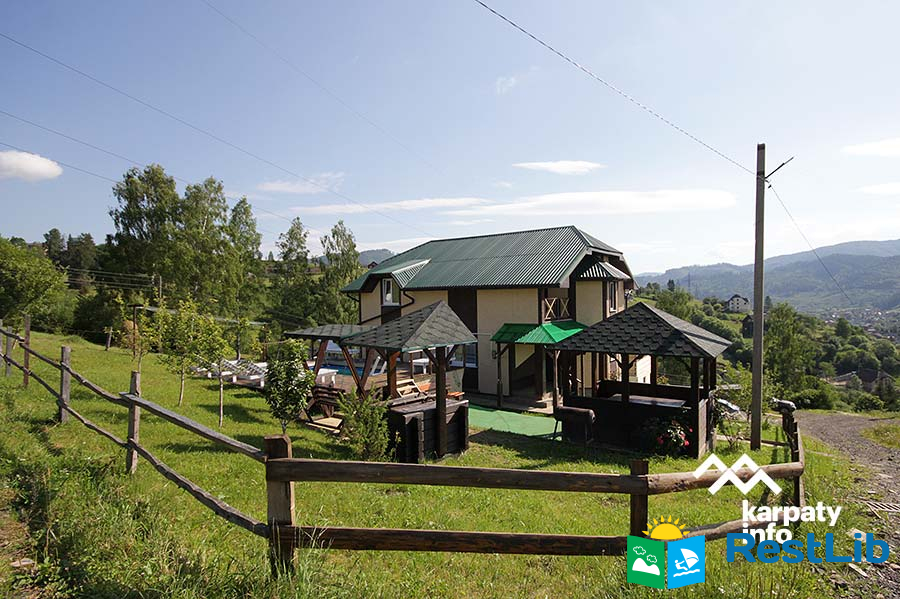 На нашій території є двоповерховий будинок на 6 номерів, сауна на дровах, альтанка, мангал, гойдалка, басейн.