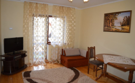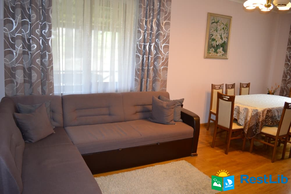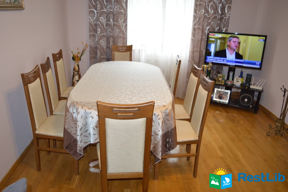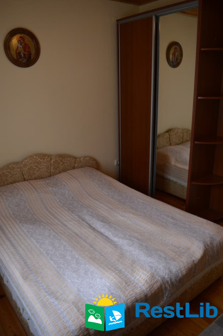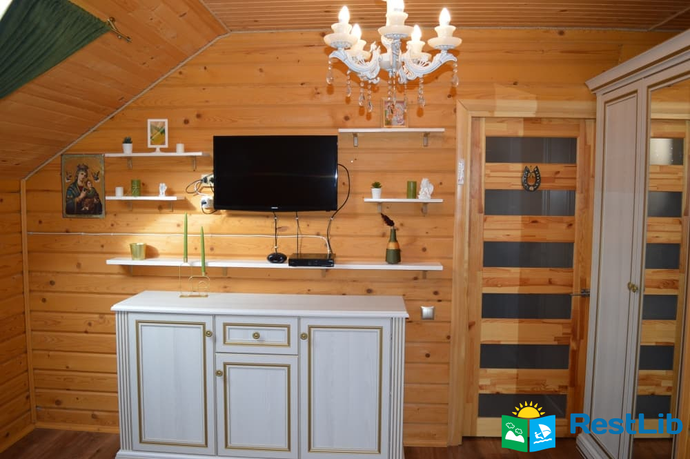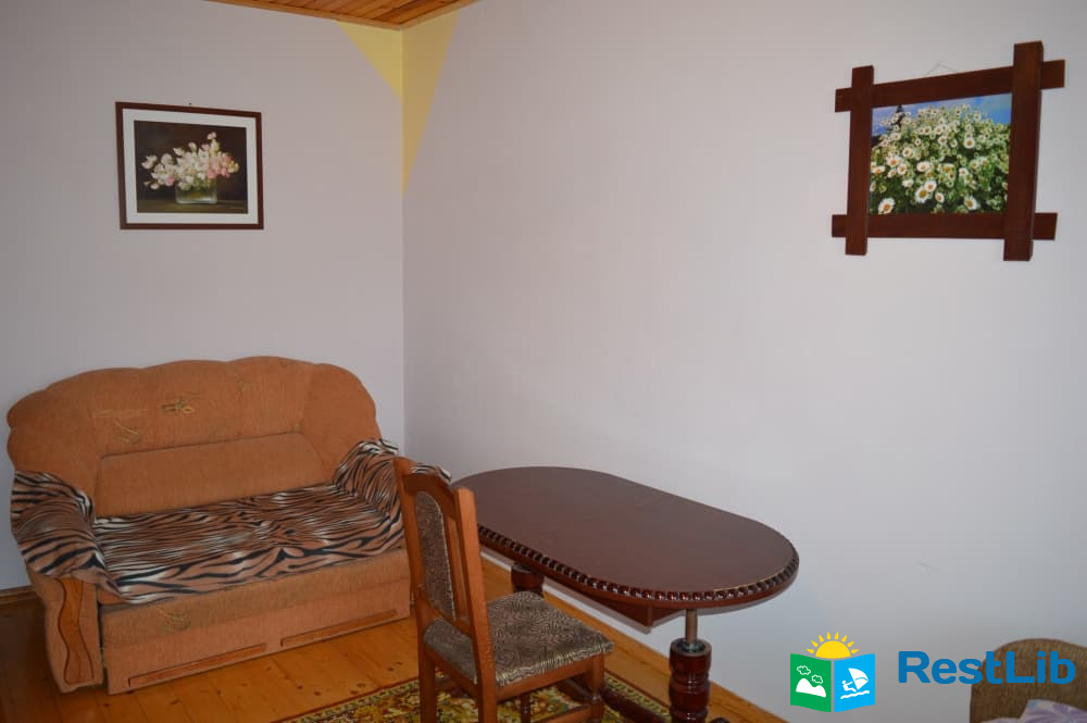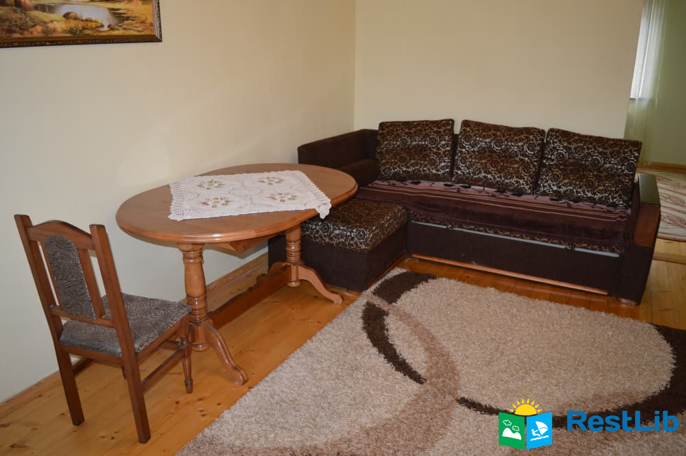 Окремий номер на третьому поверсі будинку. В номері : своя кухня, санвузол, двоспальне ліжко, розкладний диван, телевізор, шафа, обідній стіл.