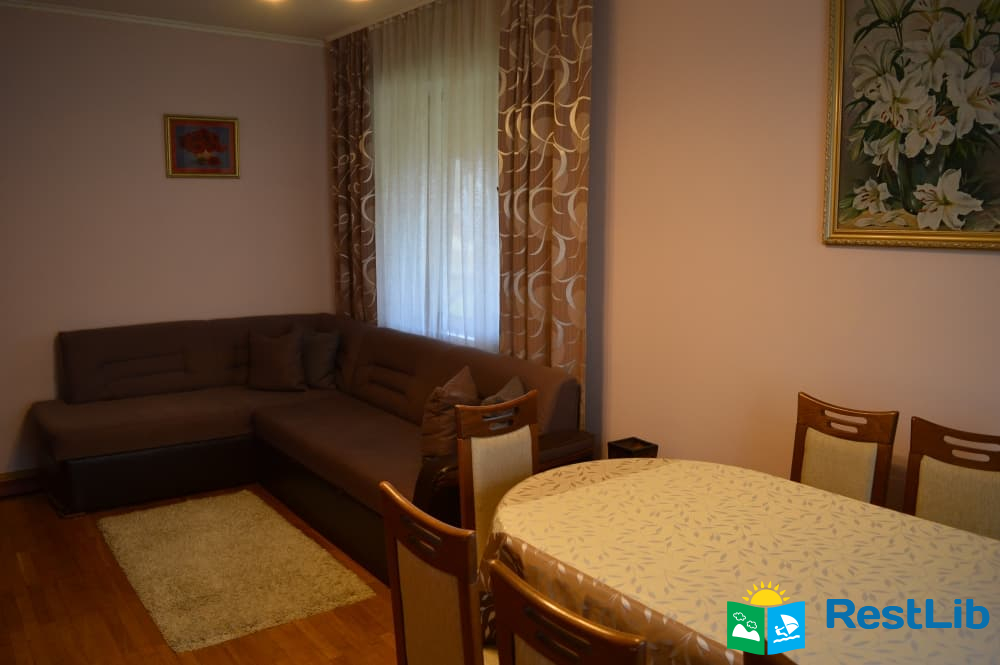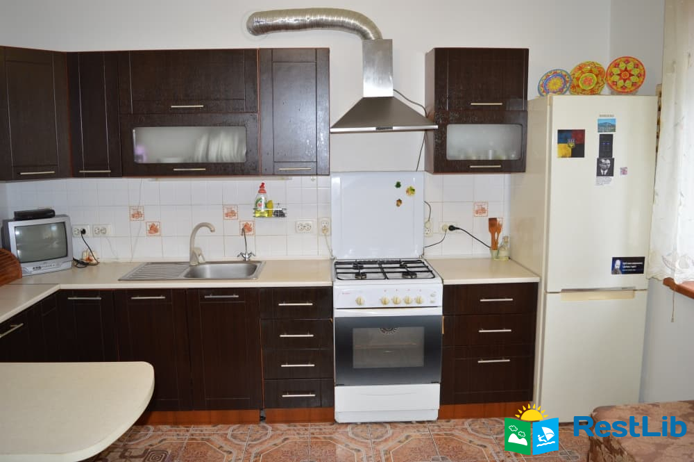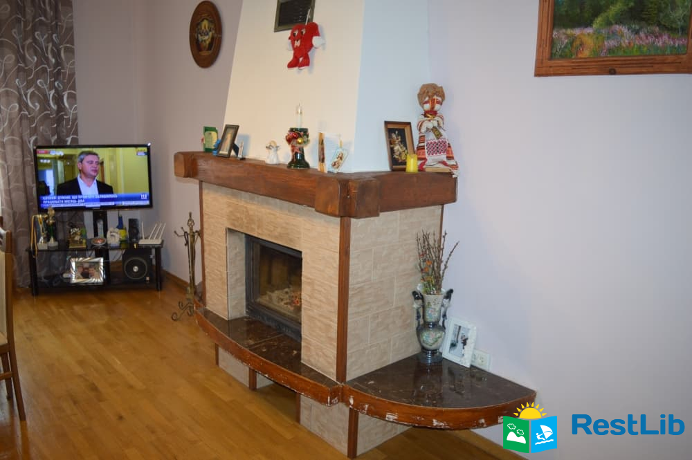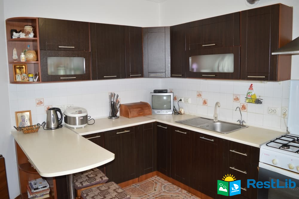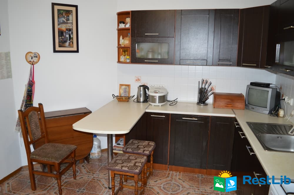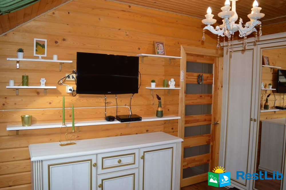 Окремий номер на третьому поверсі будинку. В номері : своя кухня, санвузол, двоспальне ліжко, розкладний диван, телевізор, шафа, обідній стіл.