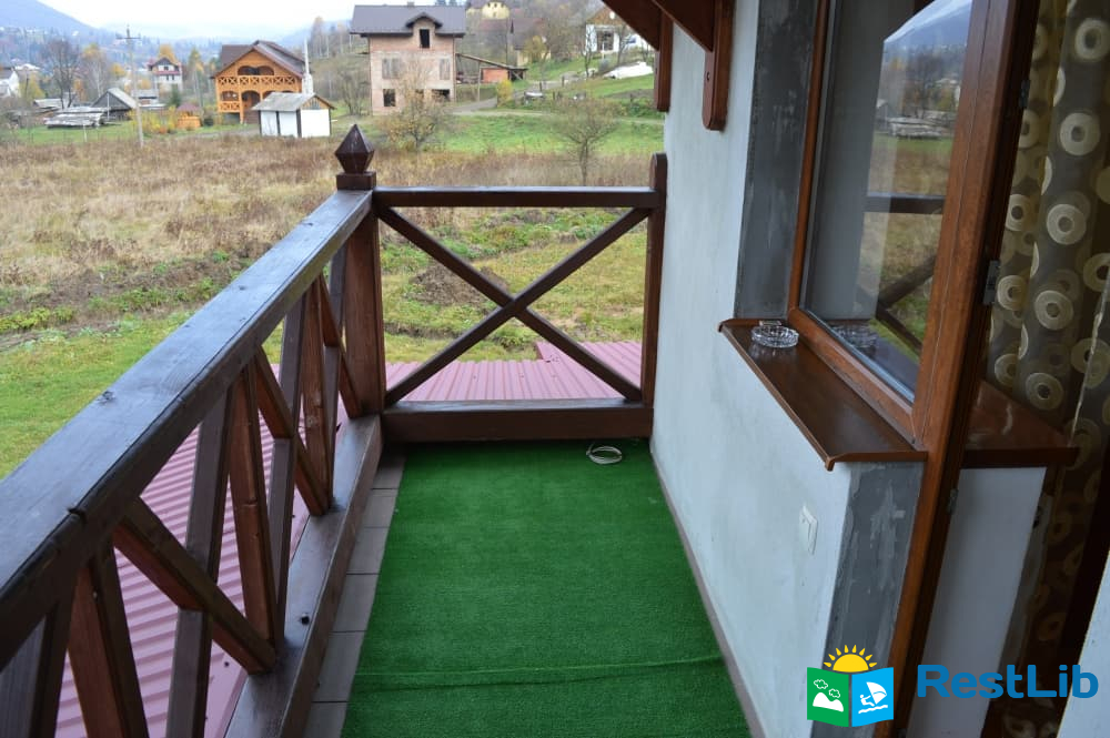 - Двокімнатий номер (2+2) на другому поверсі : одна кімната прохідні з розкладним диваном, телевізором, столом з стільцями, вихід на балкон, інша з двоспальним ліжком, шафа, санвузол (душ, туалет, умивальник), кухня загальна (додаткові місця оплачуються окремо, уточнювати по телефоні)