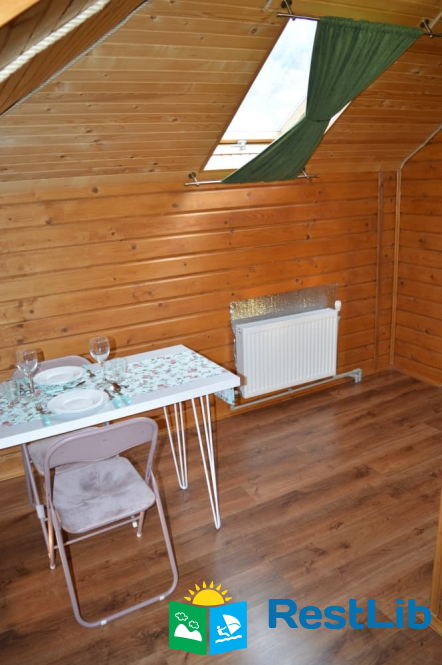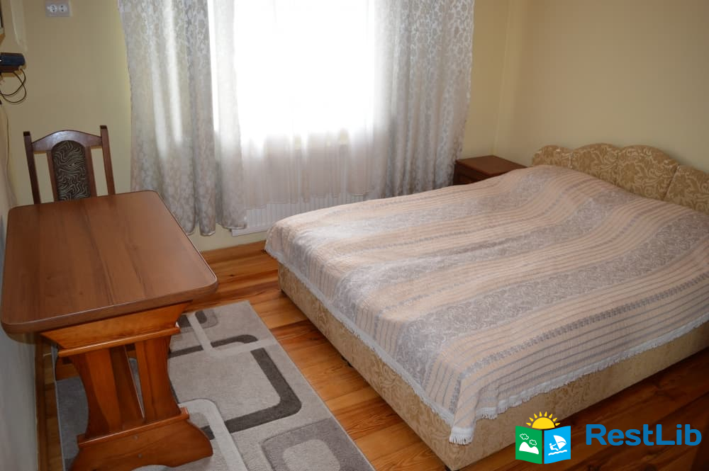 - Двомісний номер на другому поверсі : двоспальне ліжко, телевізор, приліжкові тумби, стіл з стільцем, шафа. Санвузол на 2 кімнати, кухня загальна