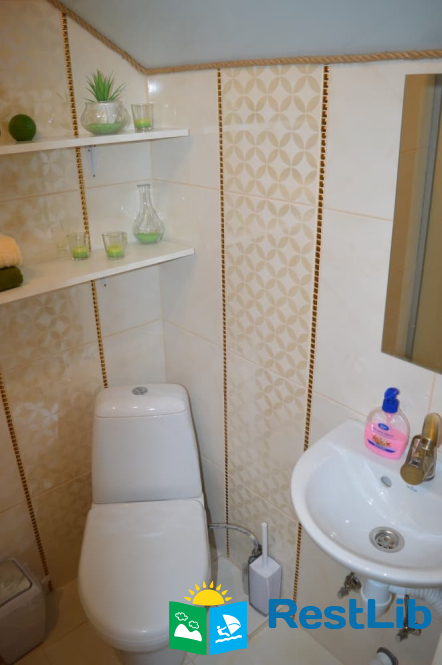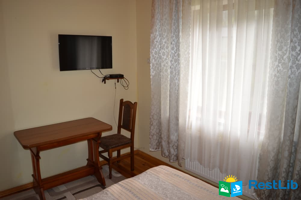 В номері: двоспальне ліжко, розкладний диван, телевізор, стіл з стільцем, шафа. Санвузол (душ, туалет, умивальник)- на 2 кімнати