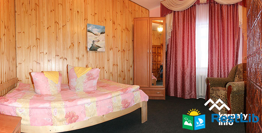 У будинку: камінний зал, хол з кухонним кутком та 9 номерів. Кожен поверх має окремий вхід.