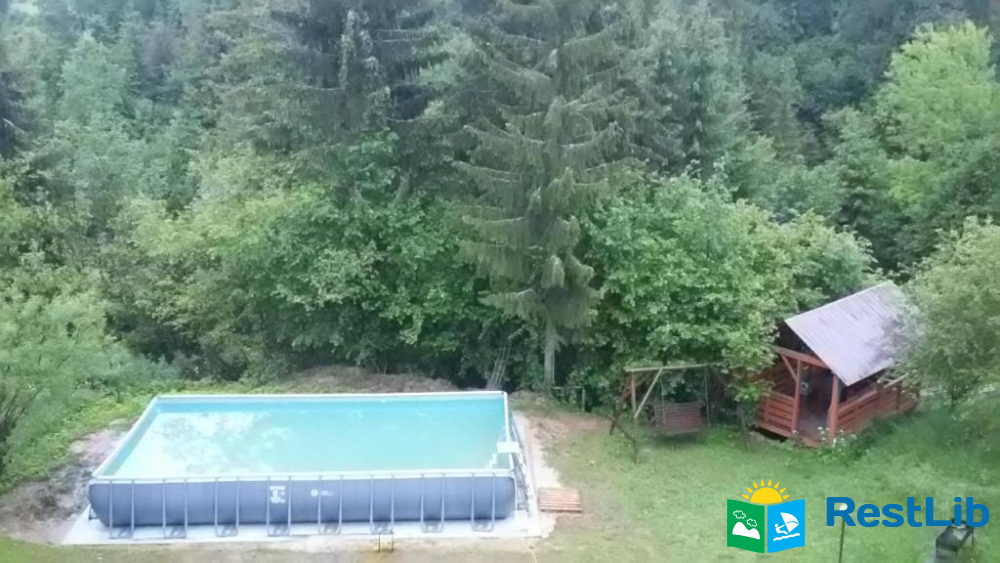 На подвір'ї є місце для приготування барбекю, дитячий майданчик, сезонний басейн, парковка.