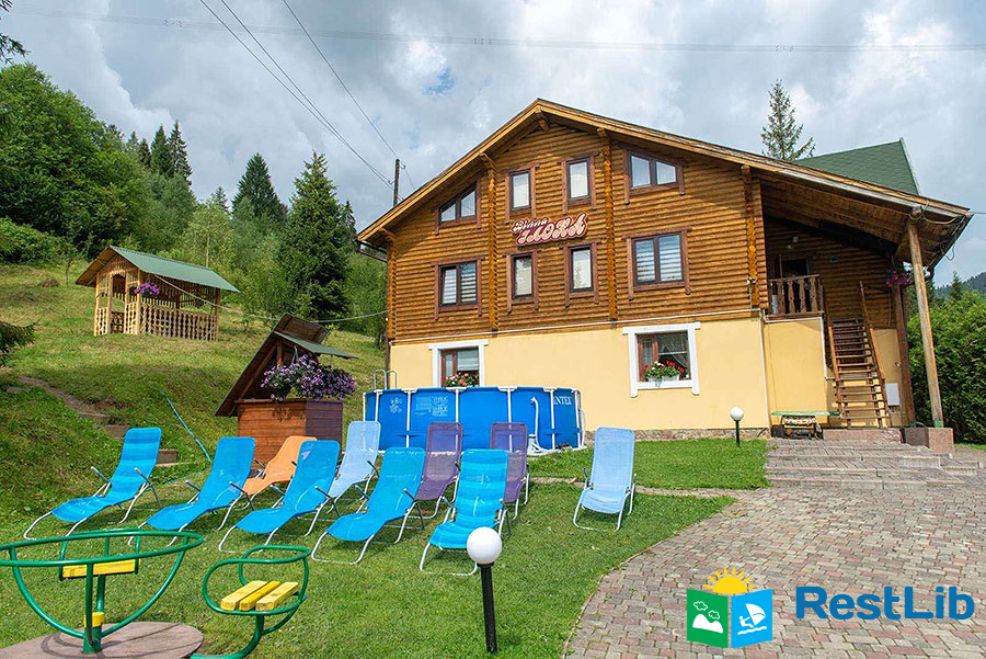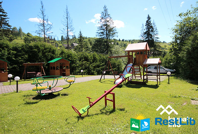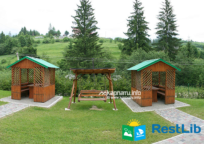 На території є мангал, альтанки, гойдалка, басейн, дитячий майданчик.