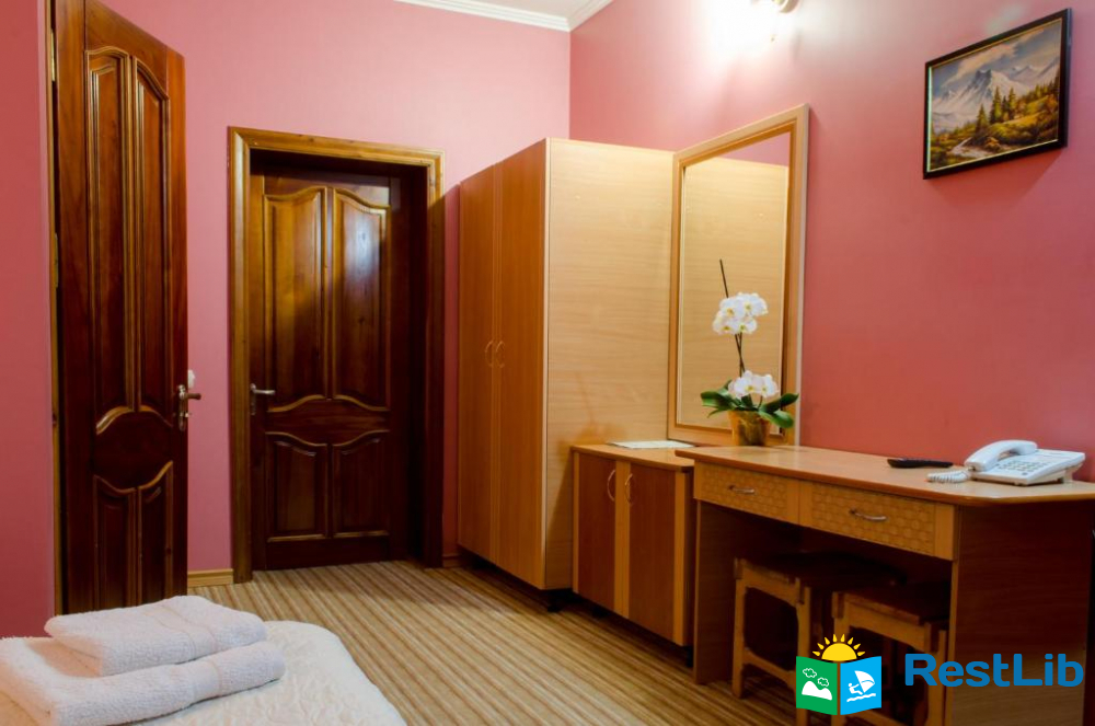 У номерах є телевізор, шафа для одягу, власна ванна кімната.