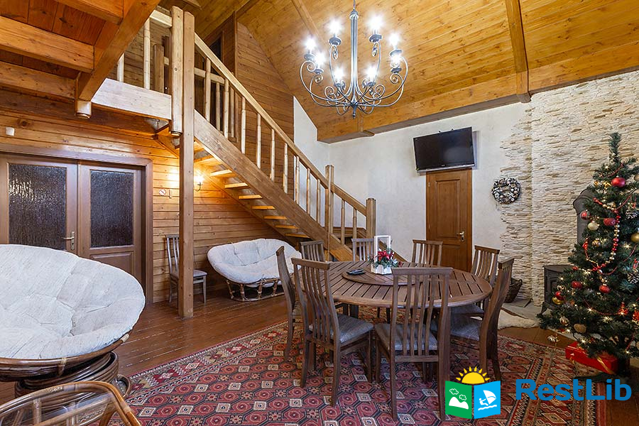 В другому котеджі (8 осіб) до послуг гостей вітальня з каміном, кухня, 4 двомісних номерів, 4 ванних кімнат.