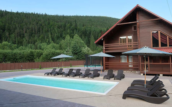 На території котеджів "Бамбетлі" розташовані два двоповерхові дерев'яні котеджі, зона барбекю, парковка, басейн.