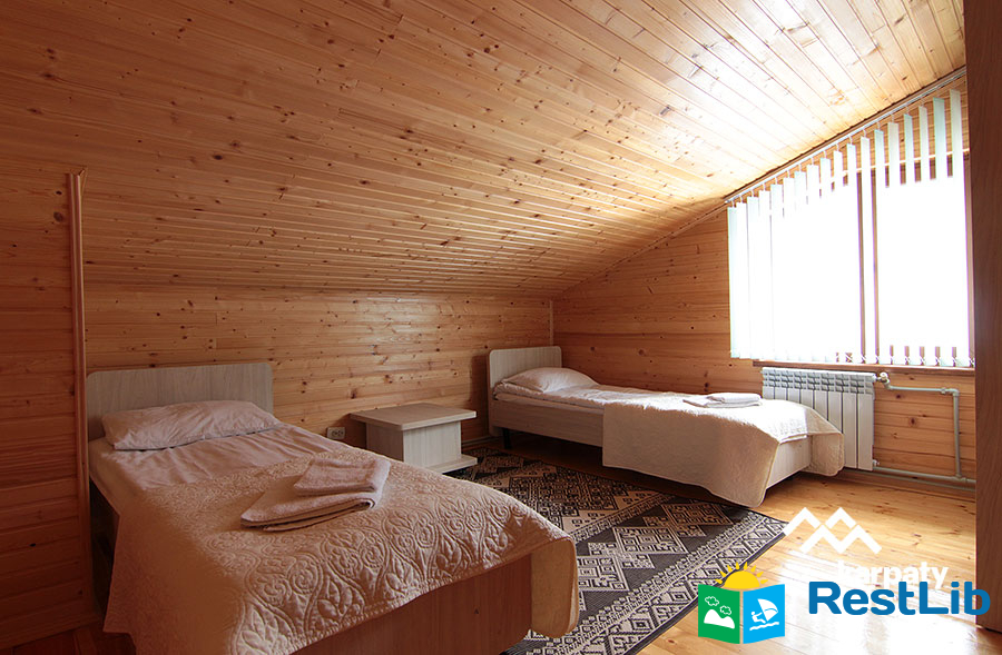 На території котеджу "Світлана" знаходиться двоповерховий будинок на 28 осіб (6 номерів), сауна на дровах з контрастним басейном та кімнатою відпочинку, спортнивний майданчик для гри у футбол та теніс, альтанка, зона барбекю, гойдалка, парковка.