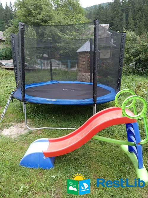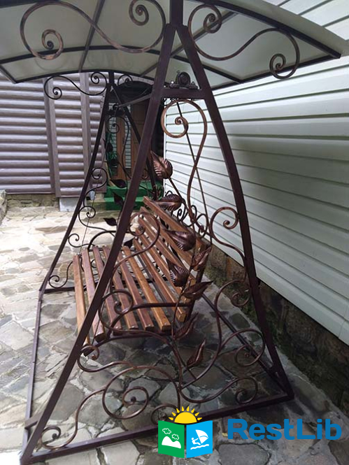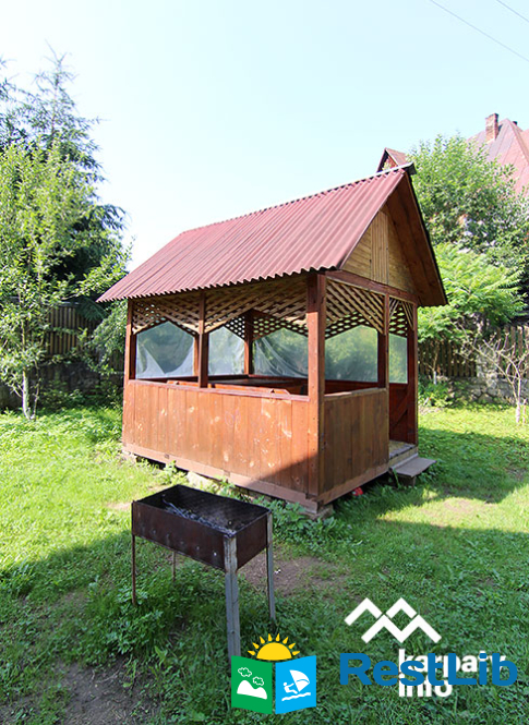 На подвір'ї є альтанка, мангал, парковка, дитячий майданчик.