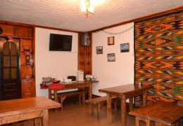 Взимку місцеві страви подають в їдальні гостьового будинку, а влітку за додаткову плату гості можуть користуватися спільною повністю обладнаною кухнею та самостійно готувати там їжу.