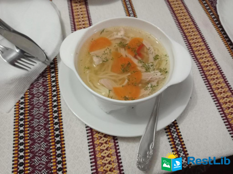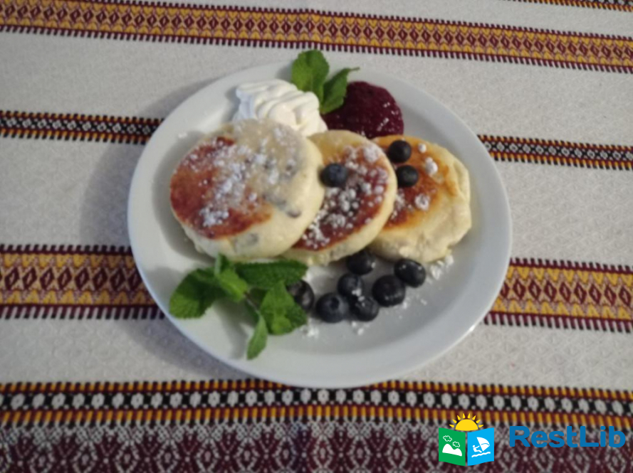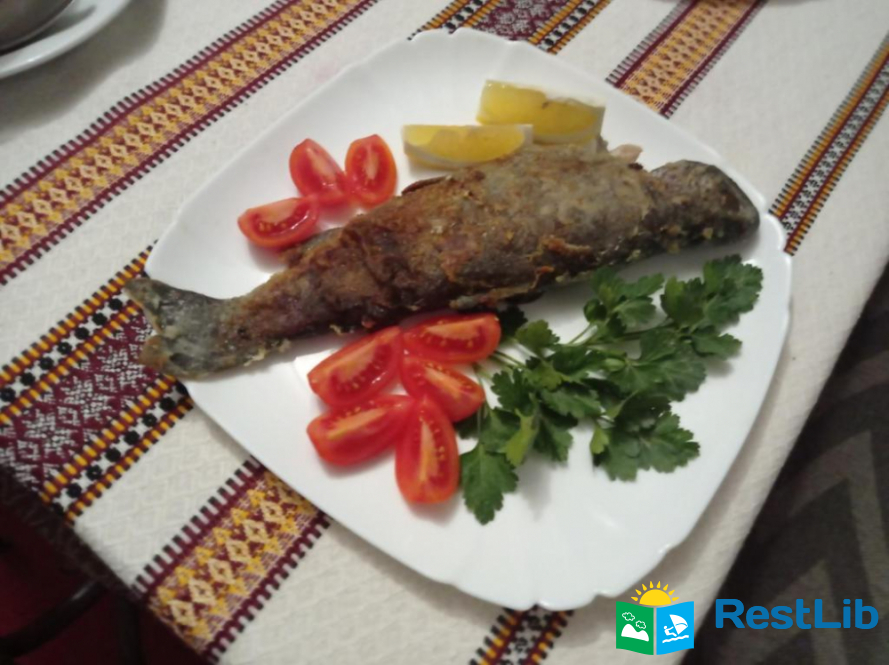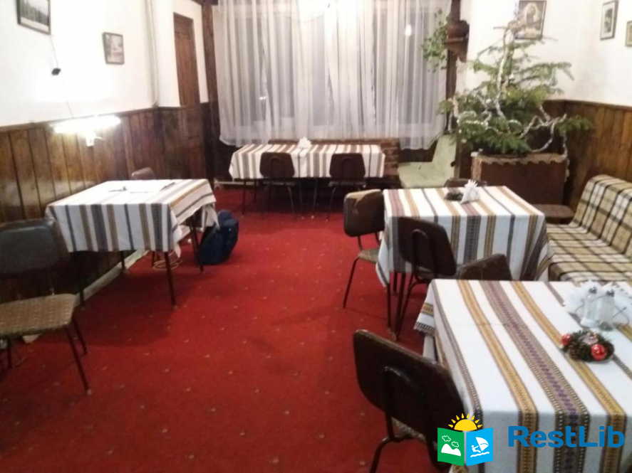 Дворазове харчування, національна кухня. На першому поверсі великий обідній зал з каміном і телевізором, кімната відпочинку та кухня. На другому - номери. На території є місце для стоянки автомобіля.
