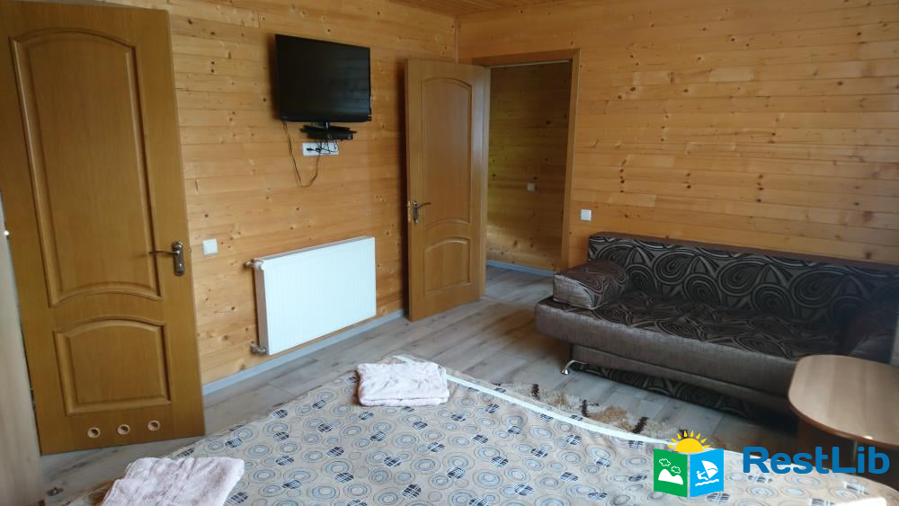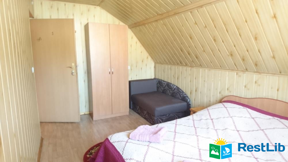 На другому поверсі — 2 двомісні номери (у кожному є двоспальне або 2 односпальні ліжка, шафа для одягу, телевізор);