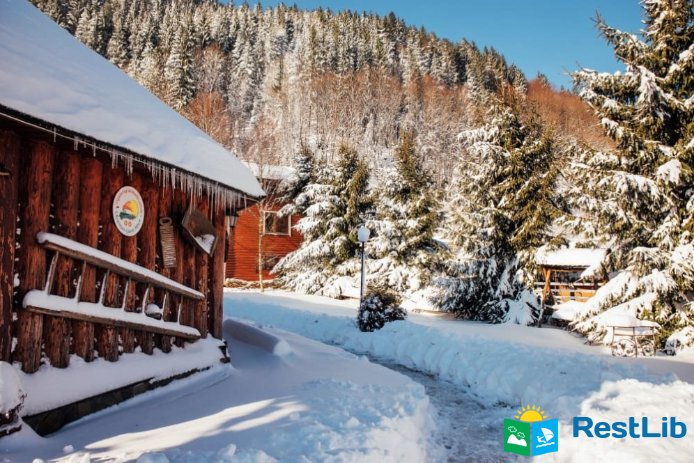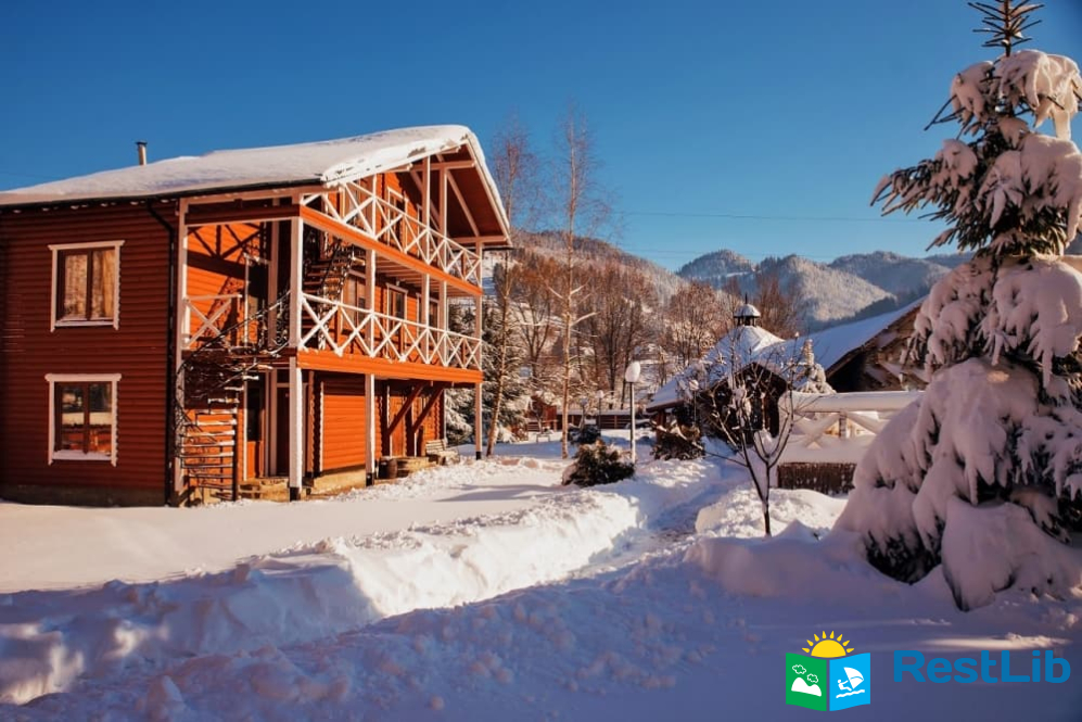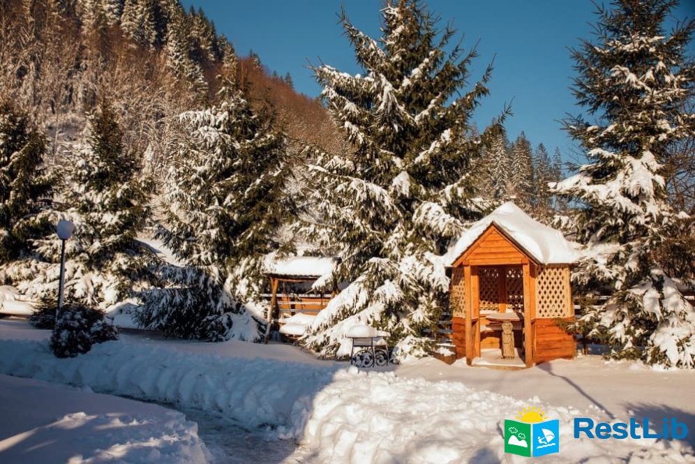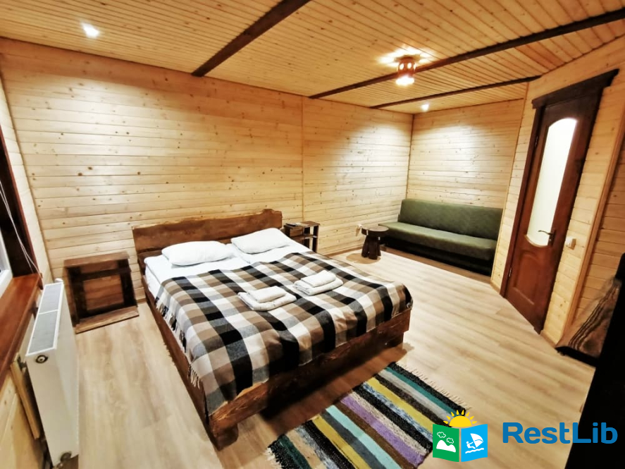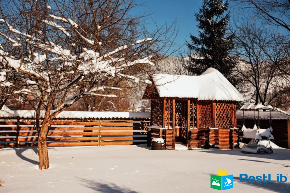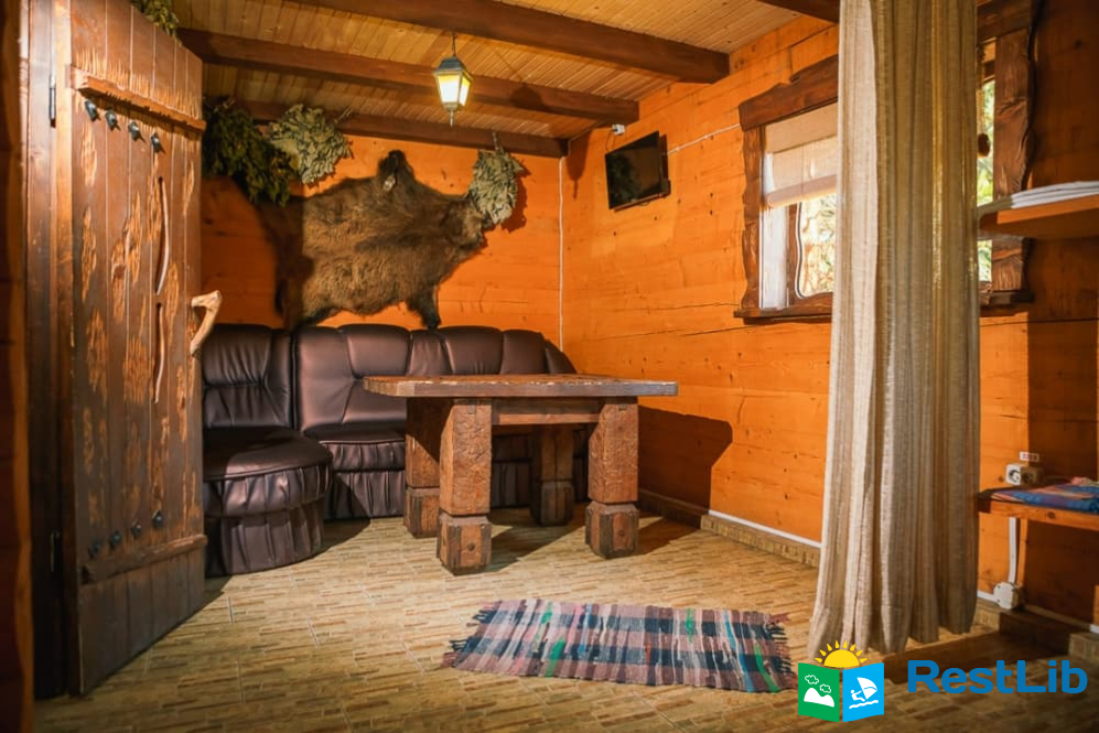 На території розташовані кафе-колиба, сауна на дровах, 4 альтанки з мангалами, дитячий та спортивний майданчики, влітку - вуличний басейн з підігрівом.