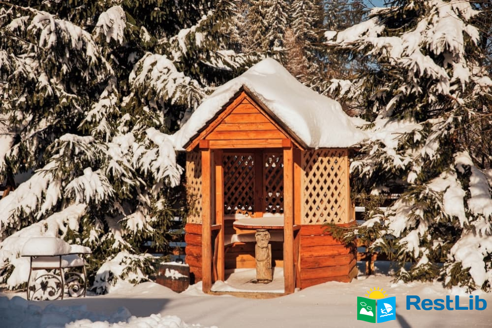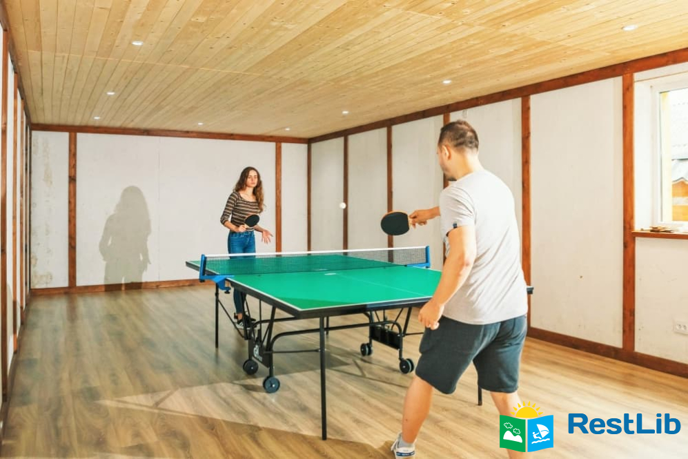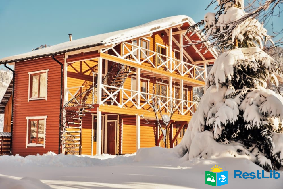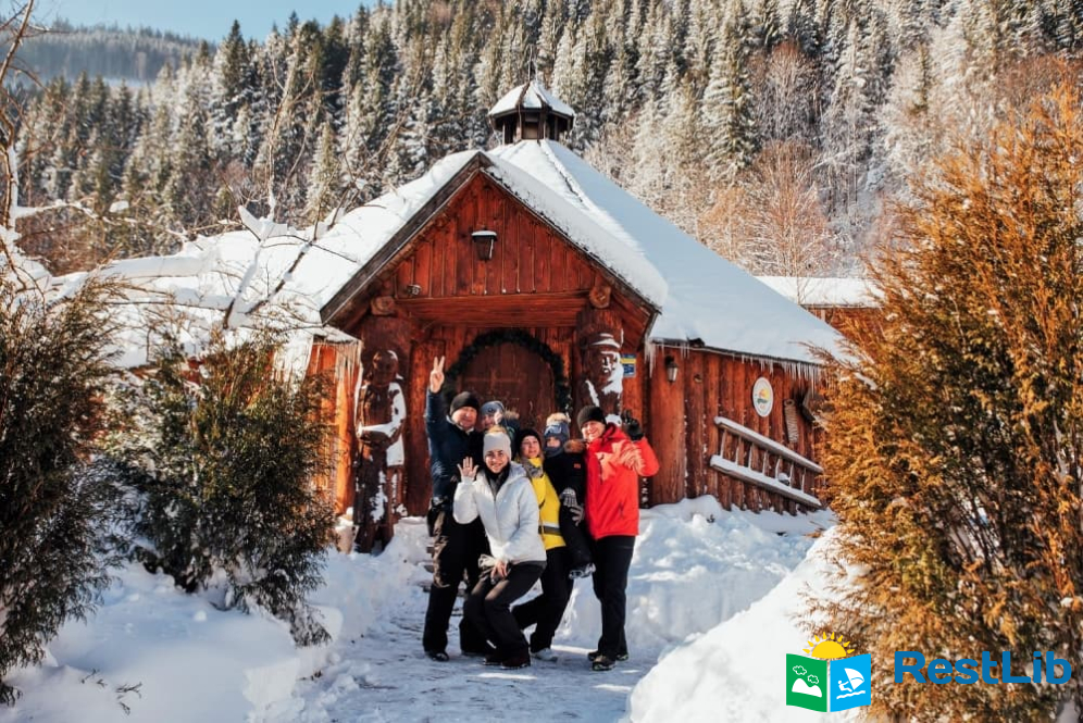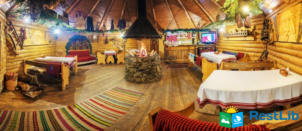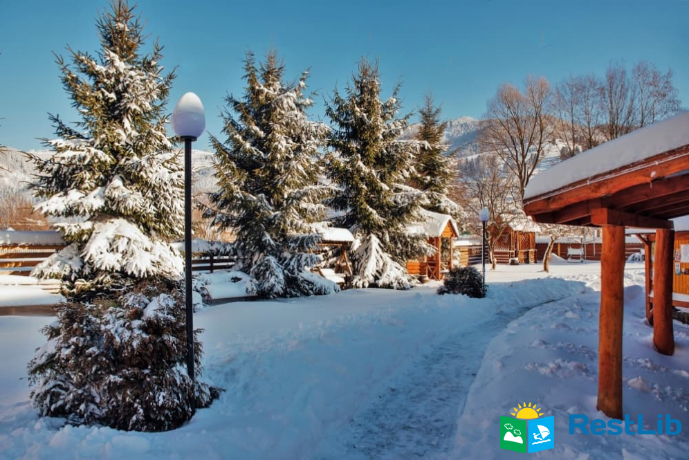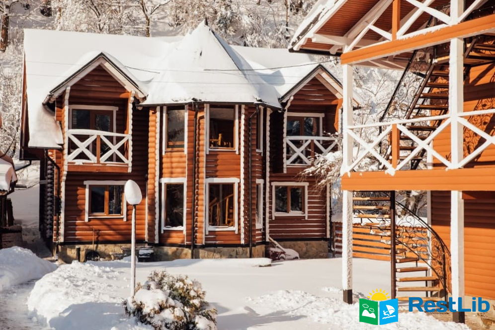 На території розташовані кафе-колиба, сауна на дровах, 4 альтанки з мангалами, дитячий та спортивний майданчики, влітку - вуличний басейн з підігрівом.