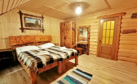 На першому поверсі - міні кухня для загального користування (мікрохвильовка, електрочайник, холодильник) 4 двомісні номери, в кожному - двоспальне ліжко, крісло-ліжко, комплект меблів, телевізор, санвузол (туалет, умивальник, душ, фен).