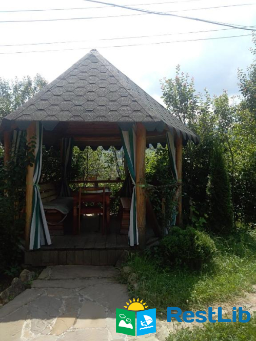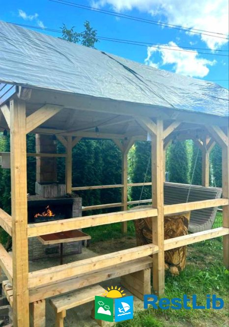 На подвір'ї є сад, гойдалка, мангал, альтанка. Поруч є ліс та річка.