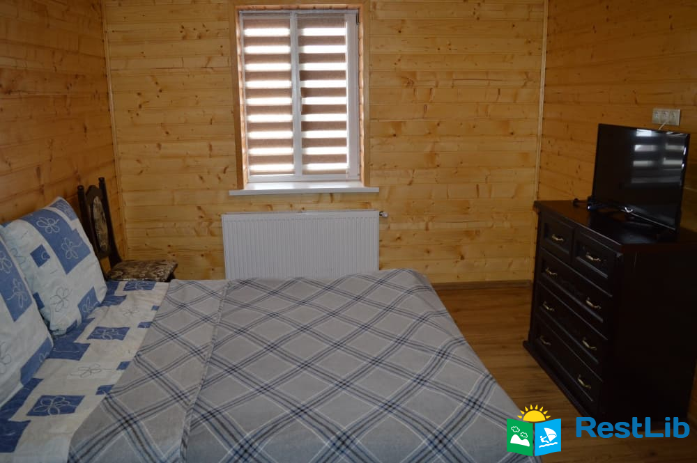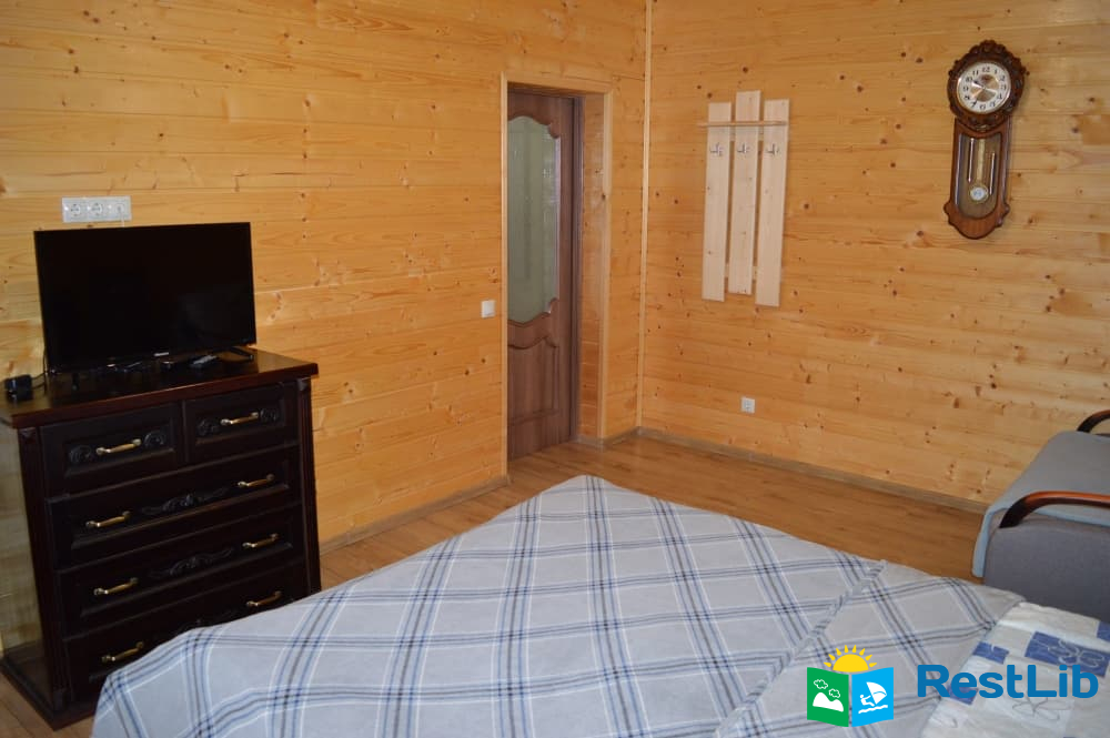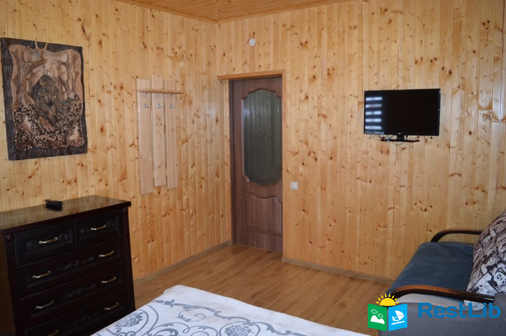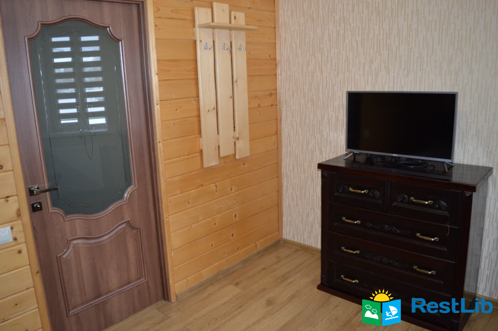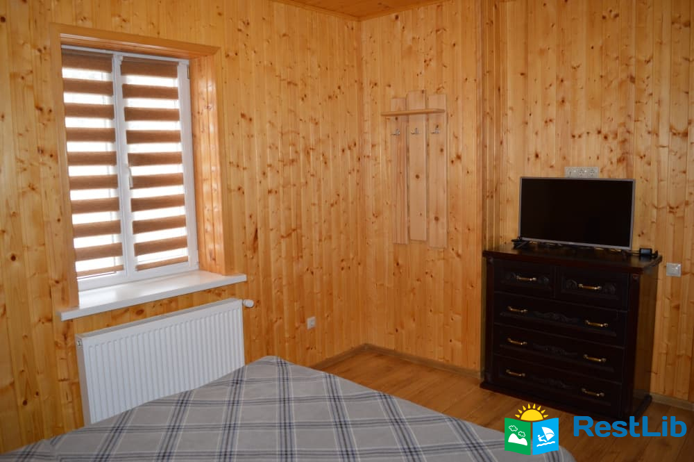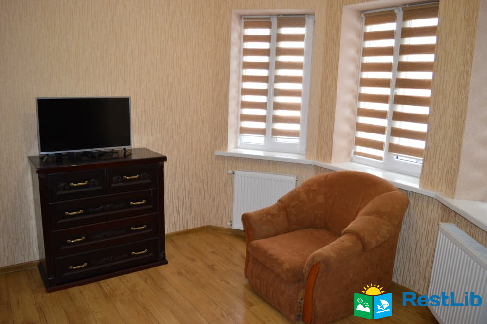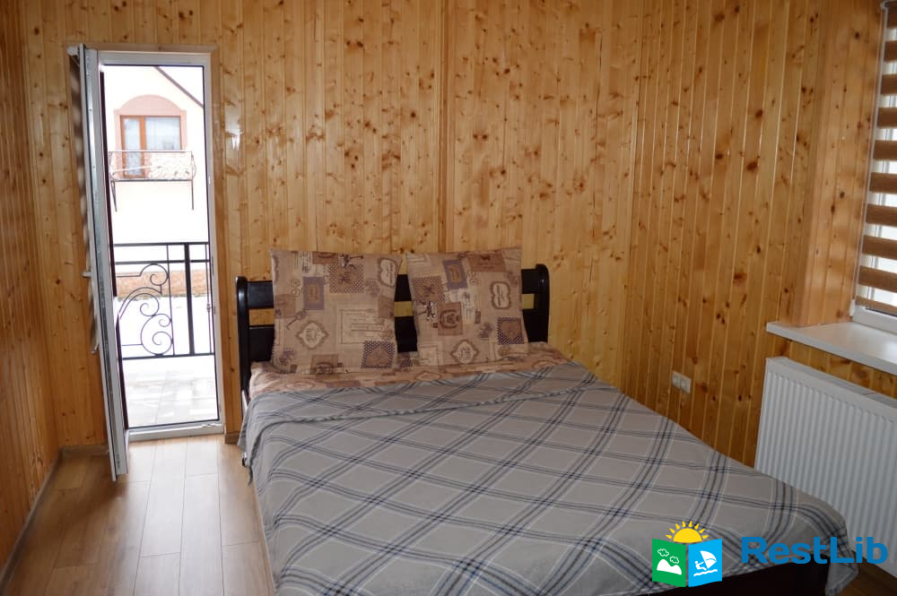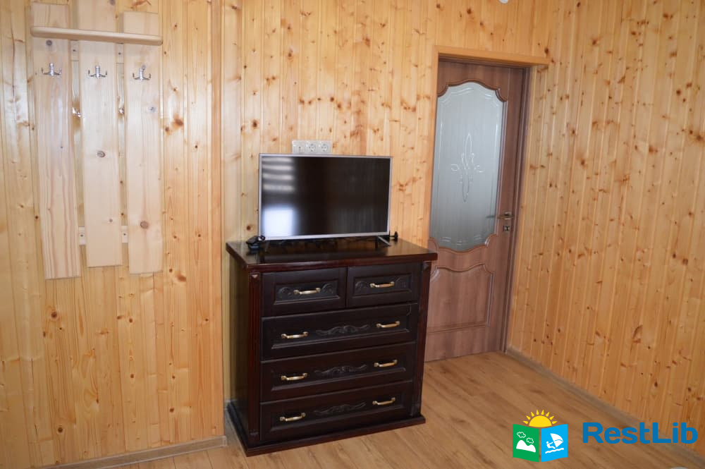 Один номер на другому поверсі з балконом (двоспальне ліжко, телевізор, комод) санвузол спільний на 4 кімнати. Два номери на першому поверсі: один просторий номер з розкладним диваном, в чорно-білих тонах, телевізор, комод. Інший номер з двоспальним ліжком, шафою, комодом, телевізором. Санвузли загальні на 4 кімнати.