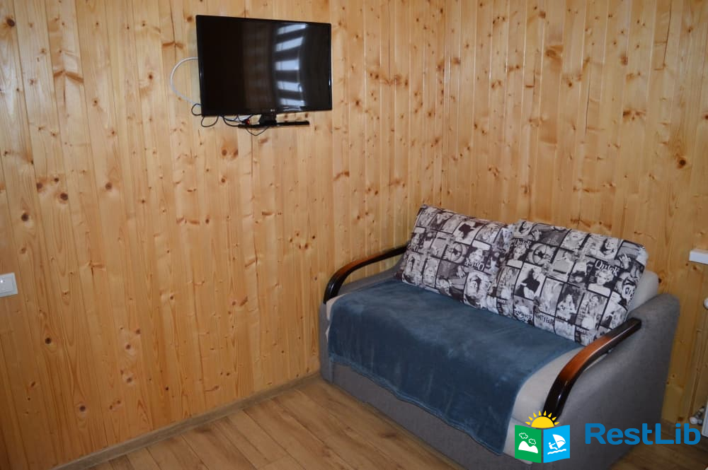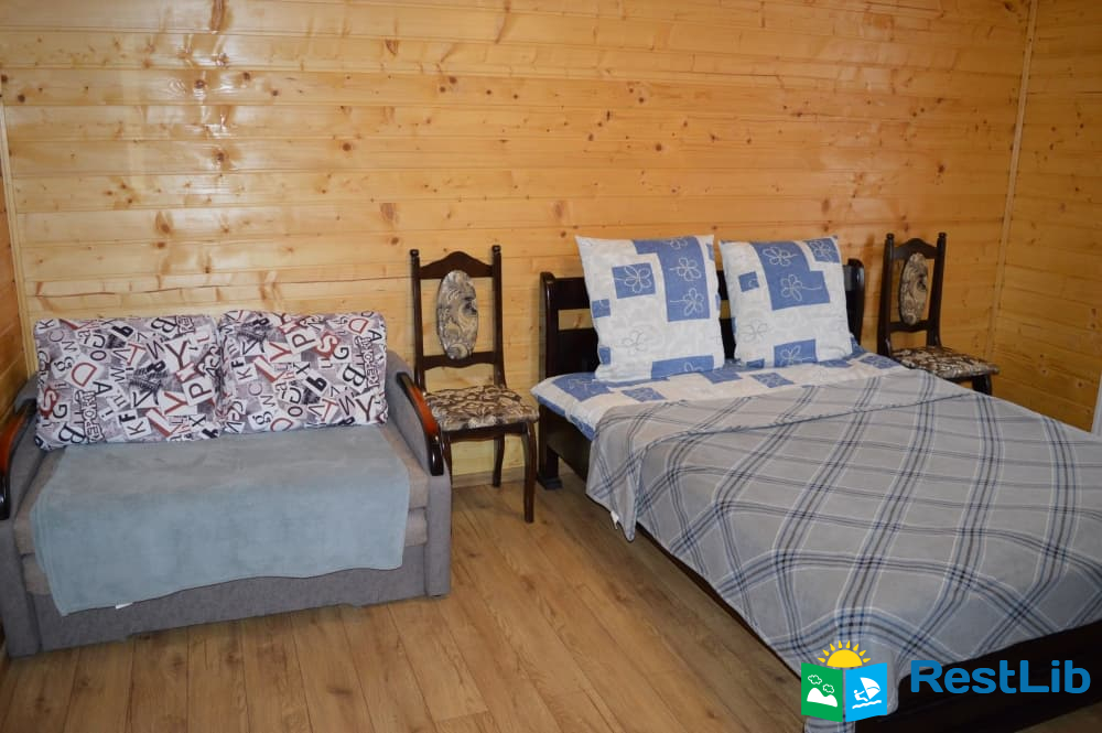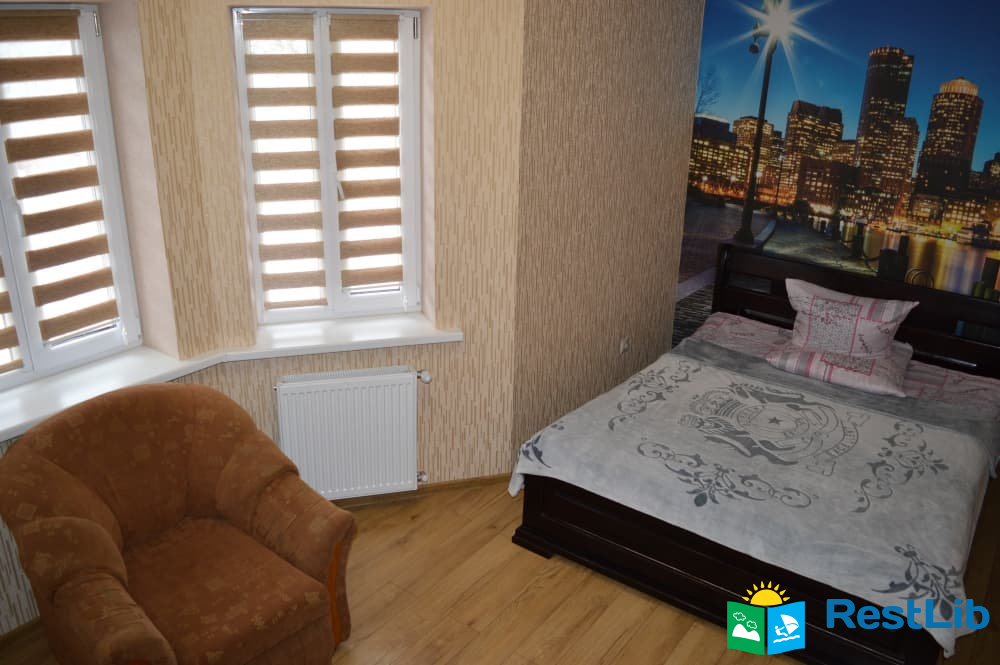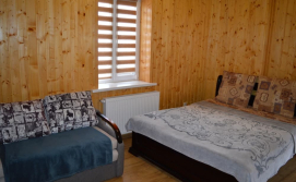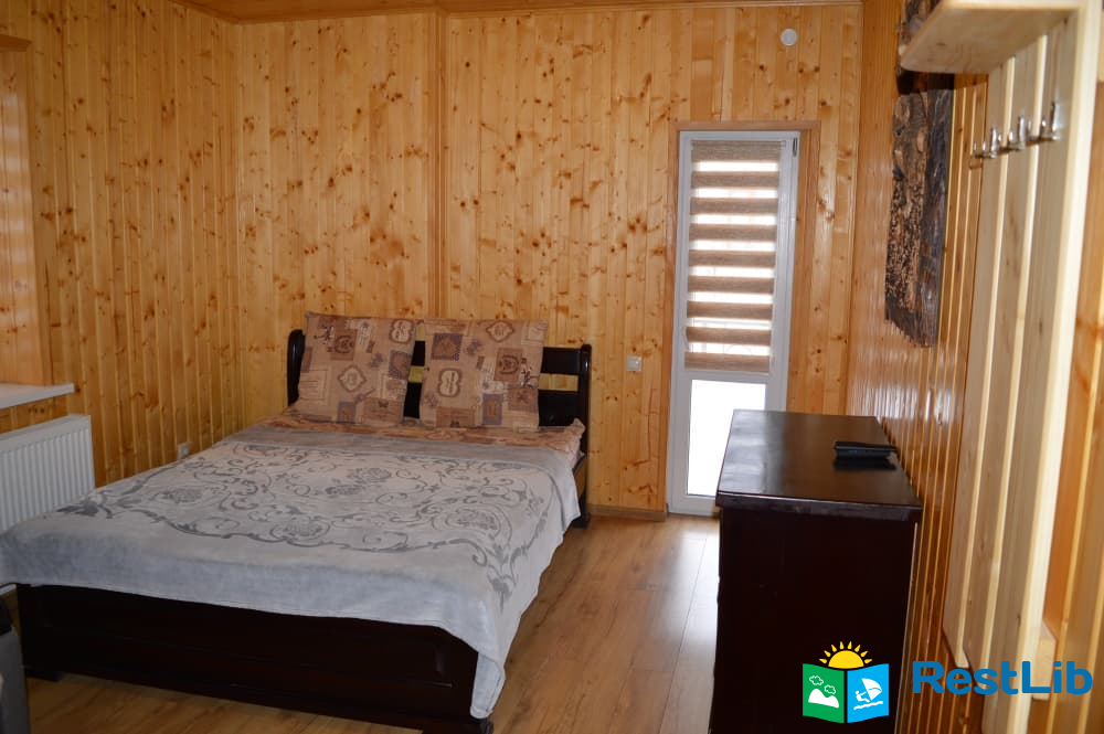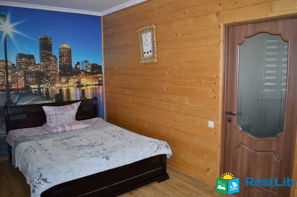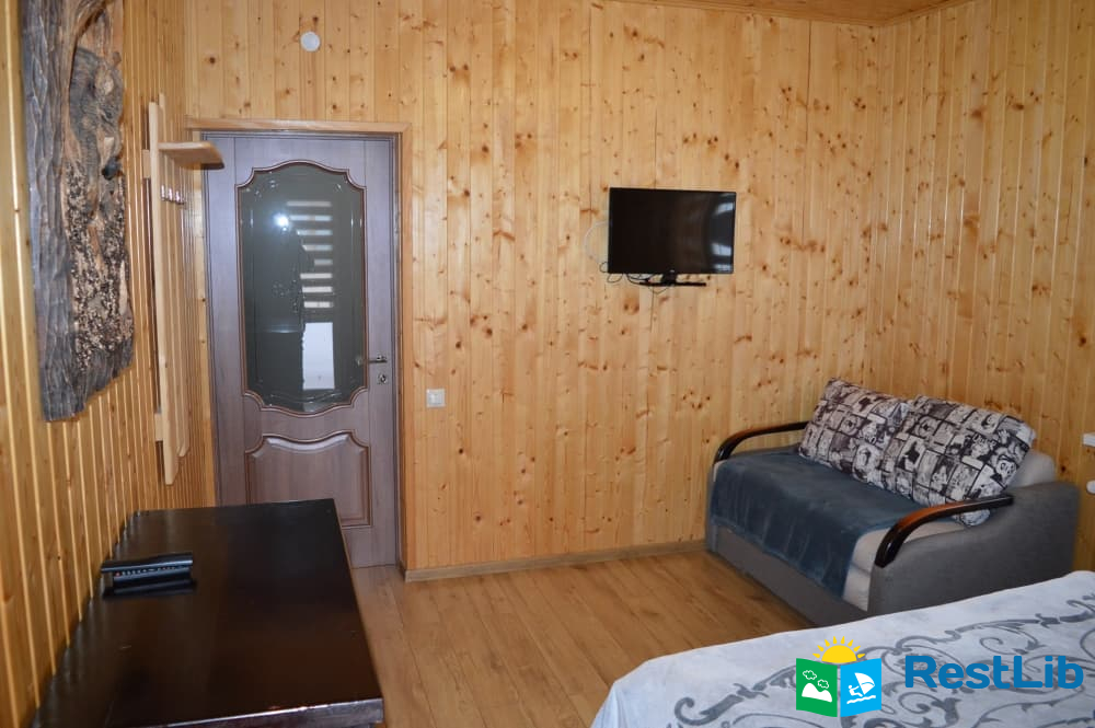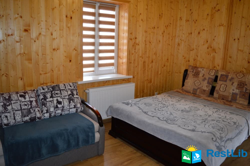 Один номер на другому поверсі з балконом (двоспальне ліжко, телевізор, комод) санвузол спільний на 4 кімнати. Два номери на першому поверсі: один просторий номер з розкладним диваном, в чорно-білих тонах, телевізор, комод. Інший номер з двоспальним ліжком, шафою, комодом, телевізором. Санвузли загальні на 4 кімнати.