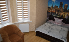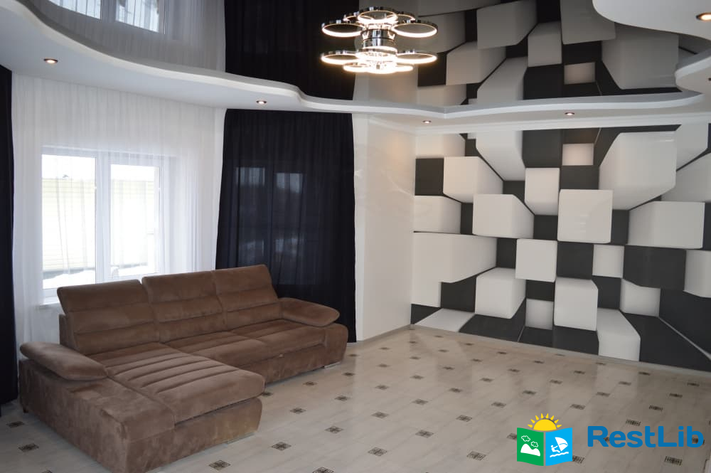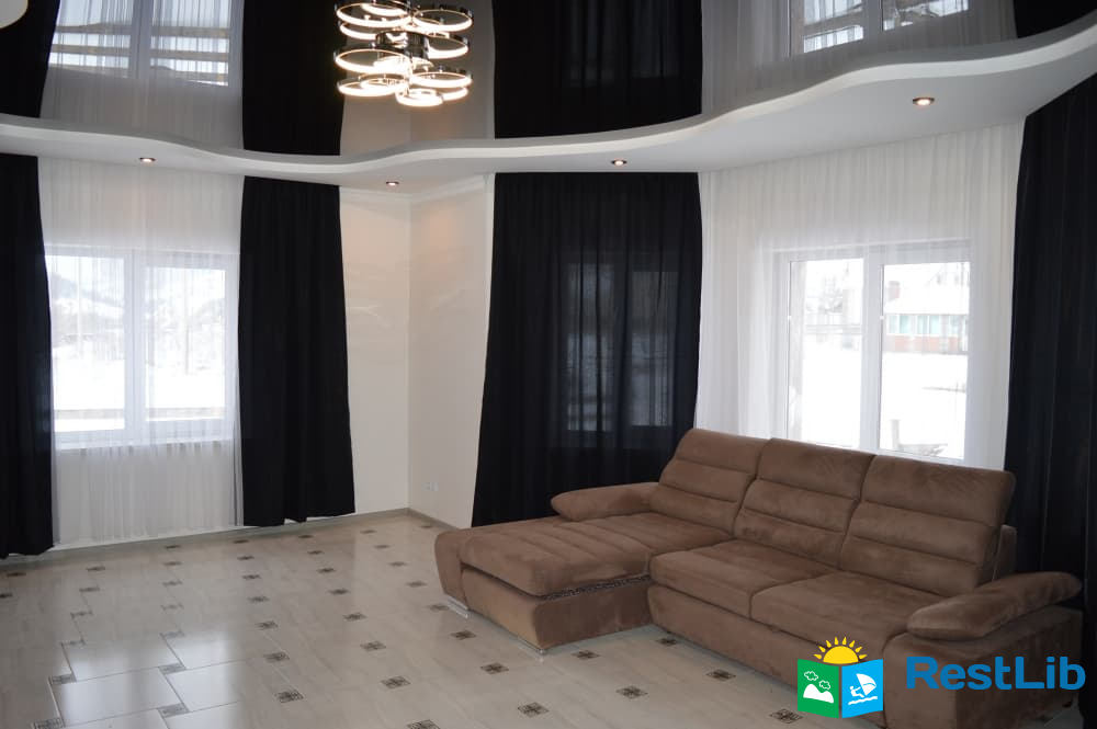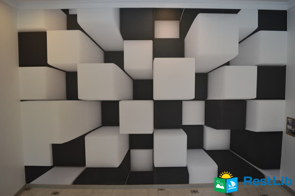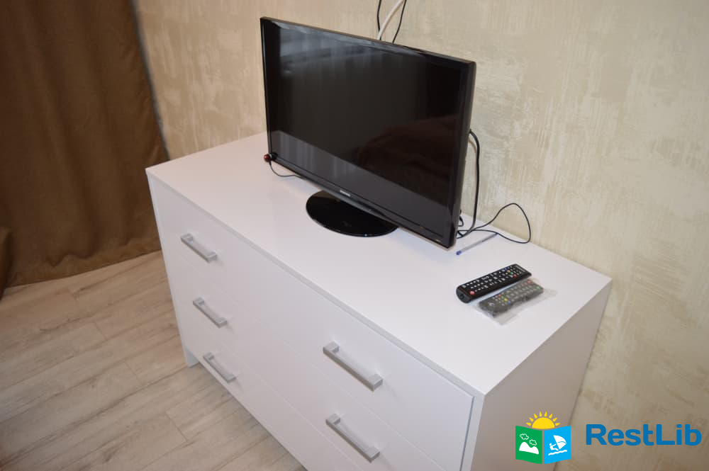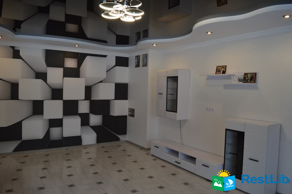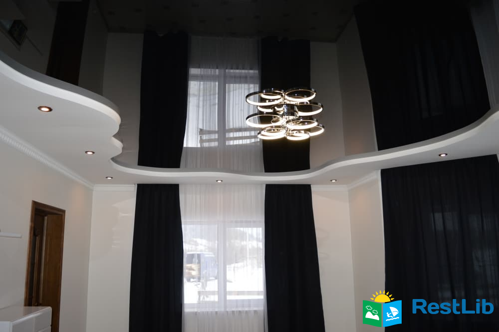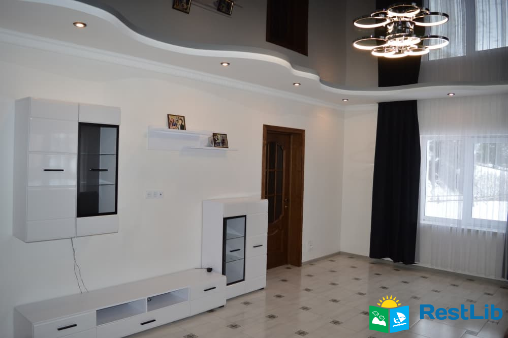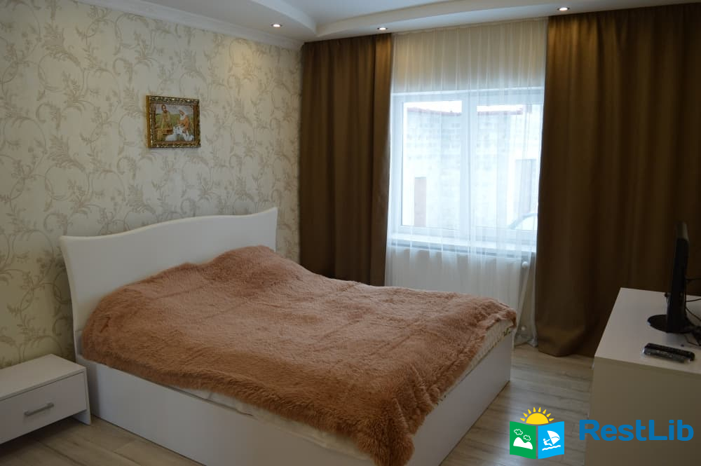 Один номер на другому поверсі з балконом (двоспальне ліжко, телевізор, комод) санвузол спільний на 4 кімнати. Два номери на першому поверсі: один просторий номер з розкладним диваном, в чорно-білих тонах, телевізор, комод. Інший номер з двоспальним ліжком, шафою, комодом, телевізором. Санвузли загальні на 4 кімнати.