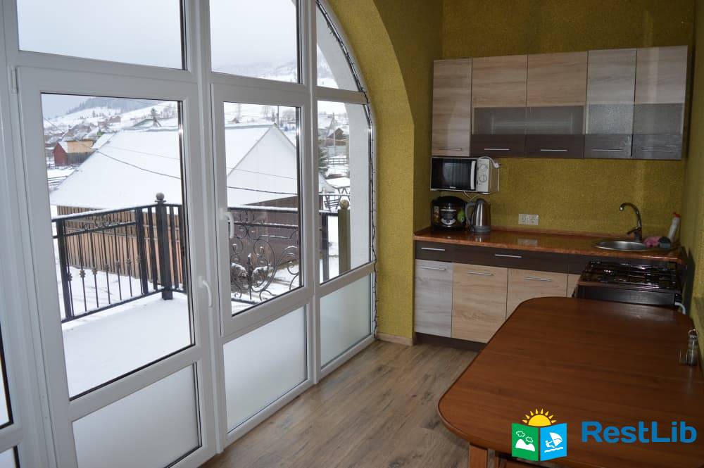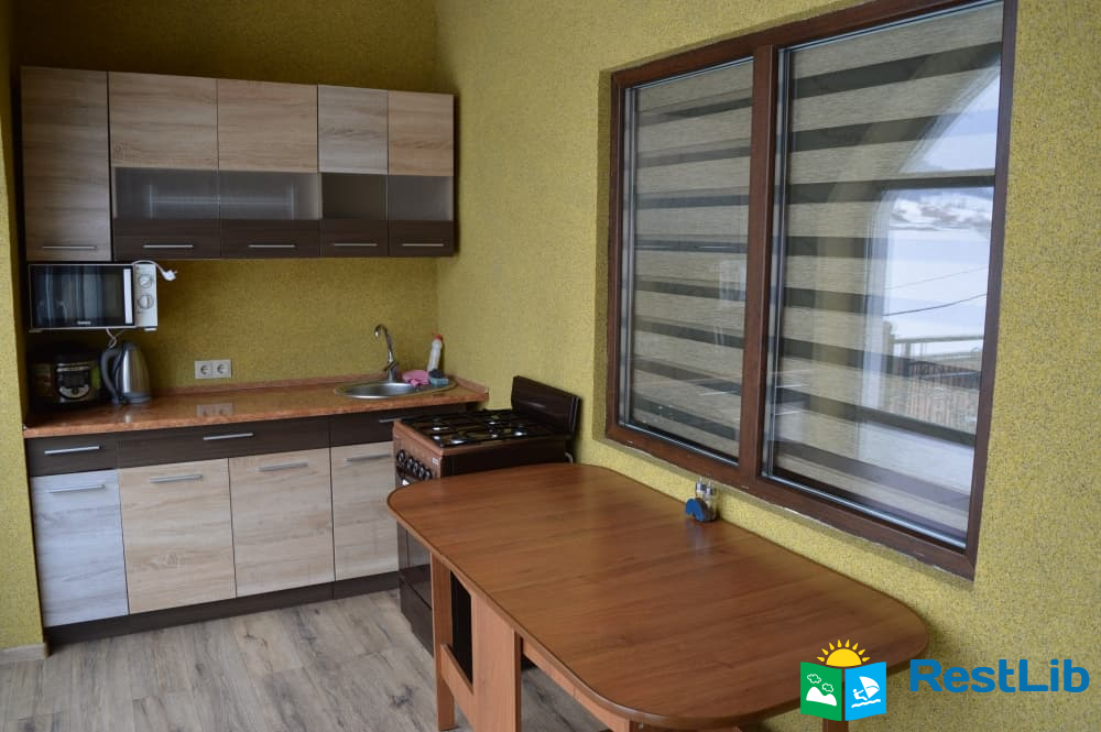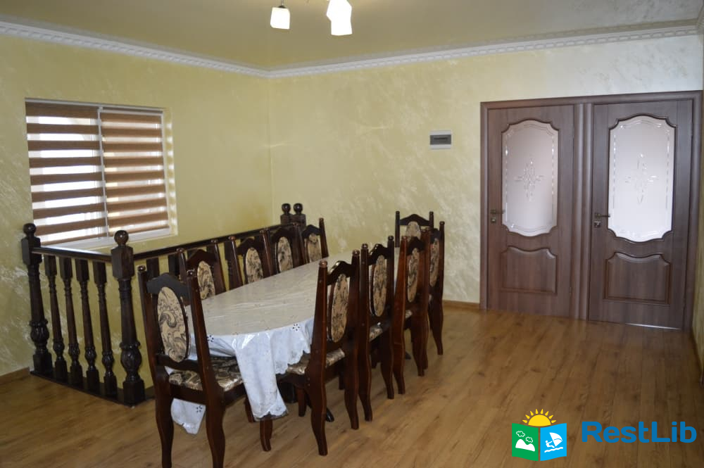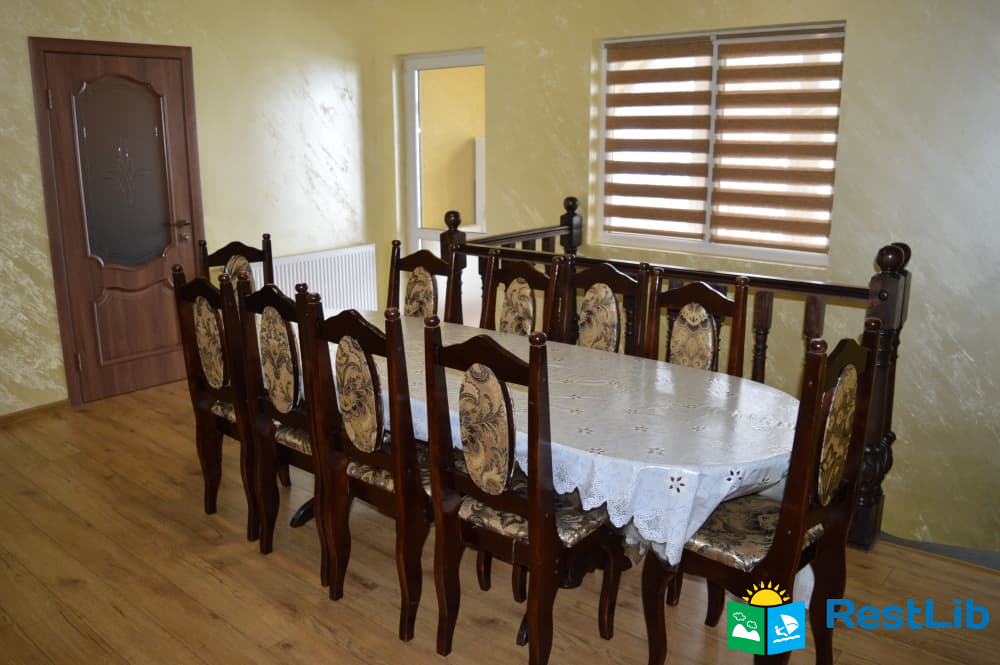 Повністю двоповерховий будинок з господарями (господарі проживають в кімнаті на першому поверсі). Другий поверх будинку. Кухня, хол-столова, обідній стіл на 12 осіб, душ, туалет. Номери : два чотиримісних, один тримісний, один двомісний. Перший поверх: два двомісні номери, роздільний душ та туалет, коридор