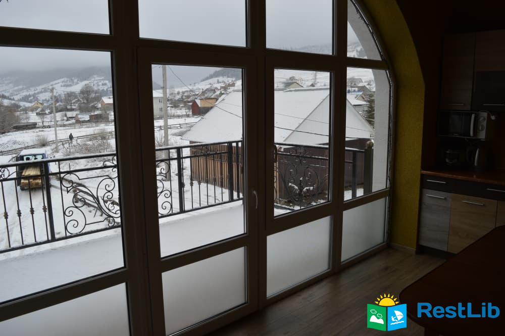 Другий поверх будинку. (Господарі проживають в кімнаті на першому поверсі). Кухня, хол-столова, обідній стіл на 12 осіб, душ, туалет. Номери : два чотиримісних, один тримісний, один двомісний. Санвузол спільний на 4 кімнати