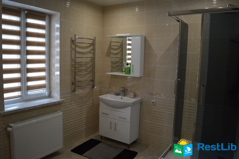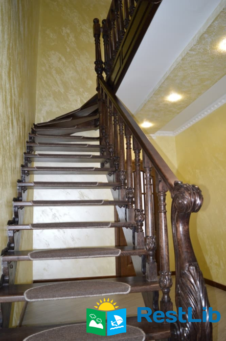 Другий поверх: хол-столова, два чотиримісні номери, один тримісний, один двомісний. Санвузол (душ, туалет роздільний) на 4 кімнати. Окрема кухня з великим балконом.
