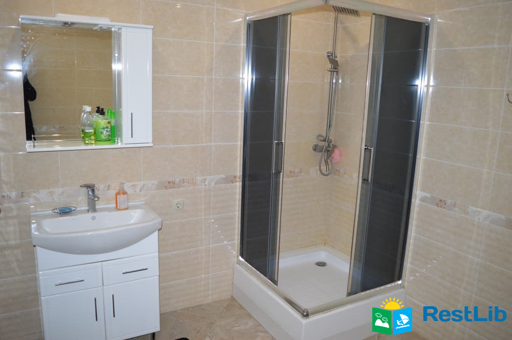 Перший поверх : два двомісні номери, роздільний душ, туалет, коридор.