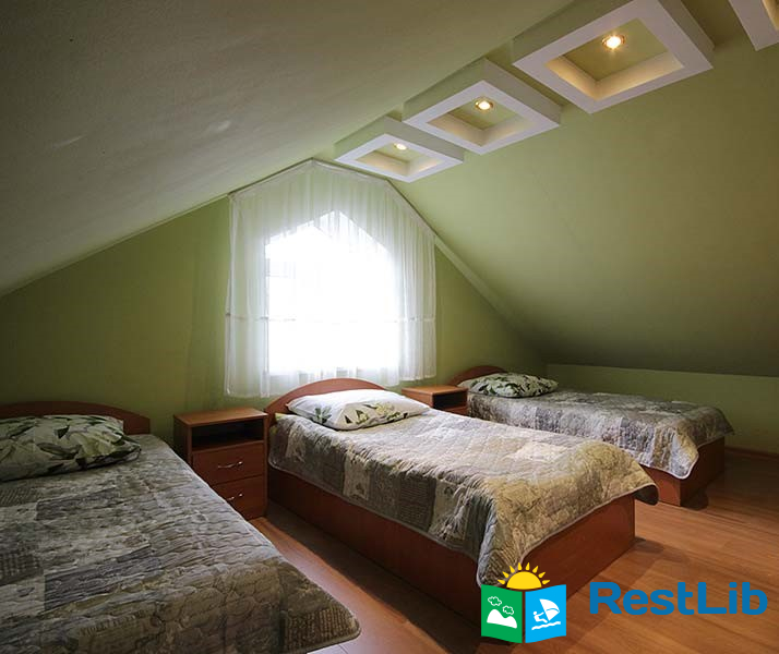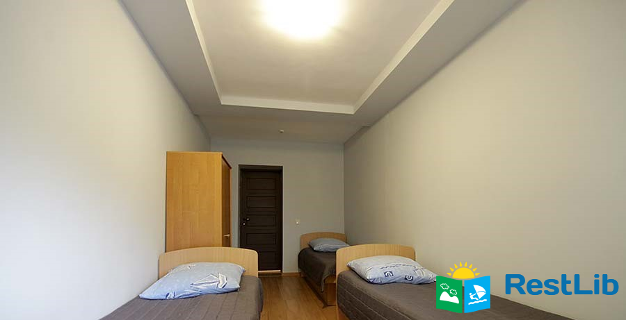 4 односпальні ліжка, шафа для одягу, телевізор, санвузол. Два номери мають вихід на балкон.