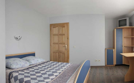 Двоспальне або 2 односпальні ліжка, шафа для одягу, телевізор, санвузол.