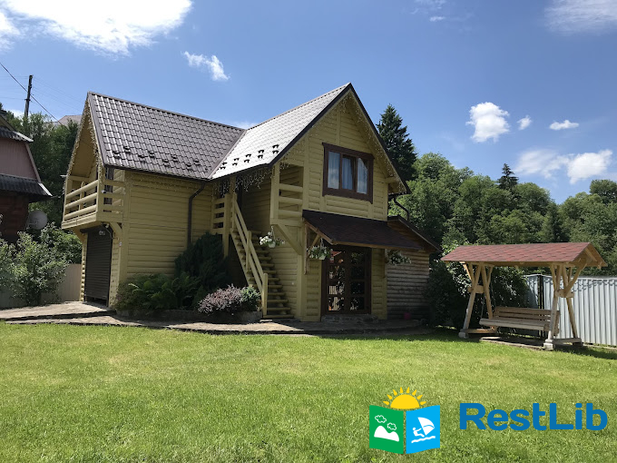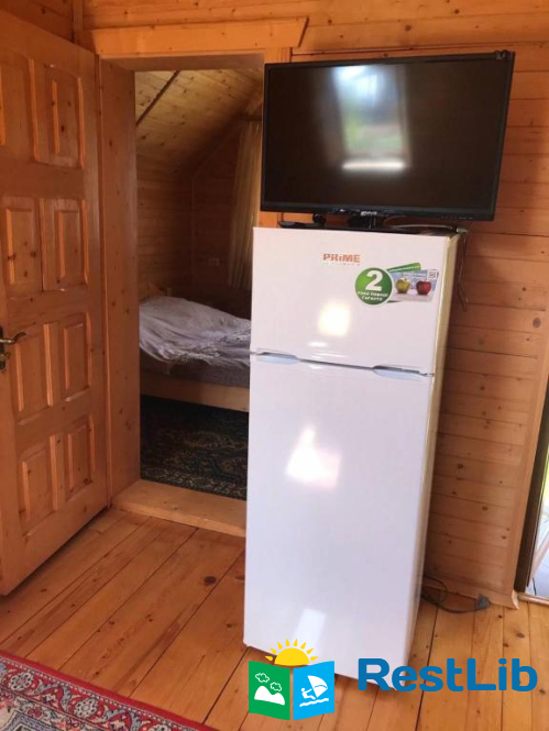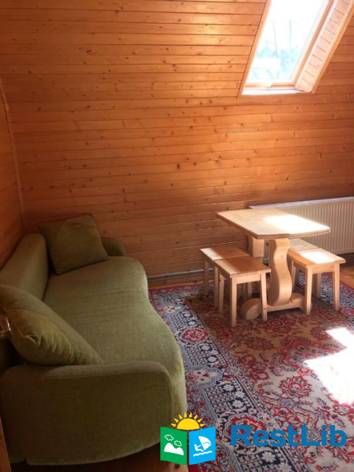 Котедж «Модрина» на 4 особи. На другому поверсі дві кімнати двомісні. В прихожій диван розкладний і міні кухня (чайник,електрична плитка, мікрохвильова піч, холодильник, посуд, стіл).