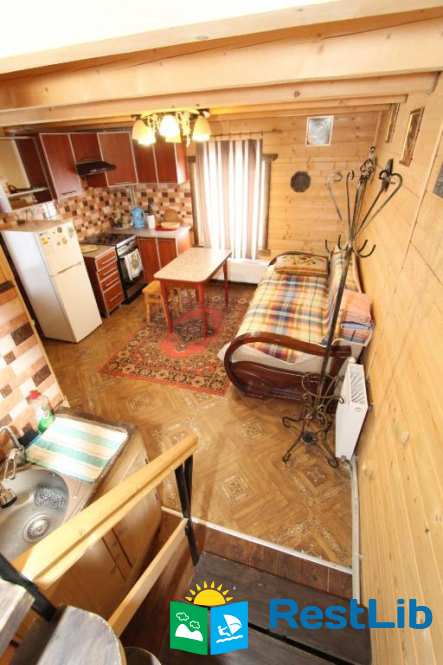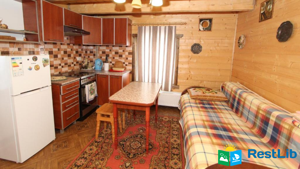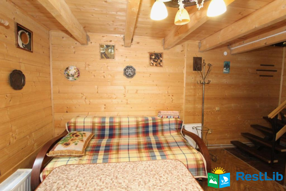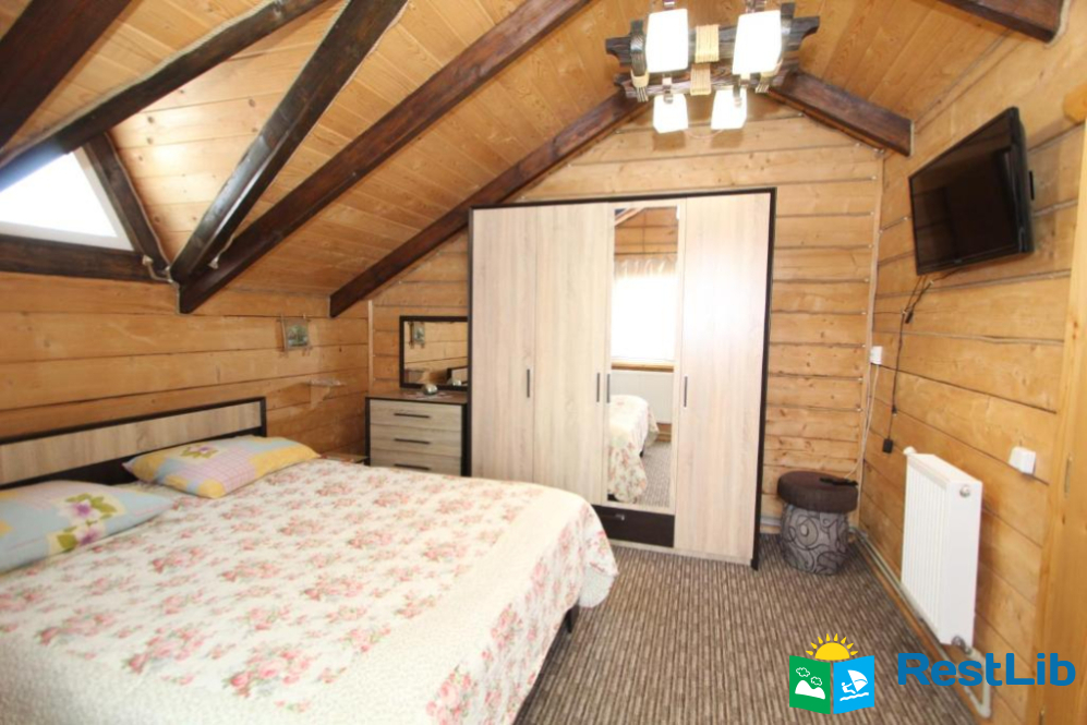 Окремий двоповерховий котедж який призначений тільки для наших гостей. На першому поверсі є вітальня з кухнею. На другому поверсі спальня з великим двоспальним ліжком і балконом, з якого відкривається вид на гори. У вітальні також є диван, який при бажанні може використовуватися як додаткове спальне ліжко.