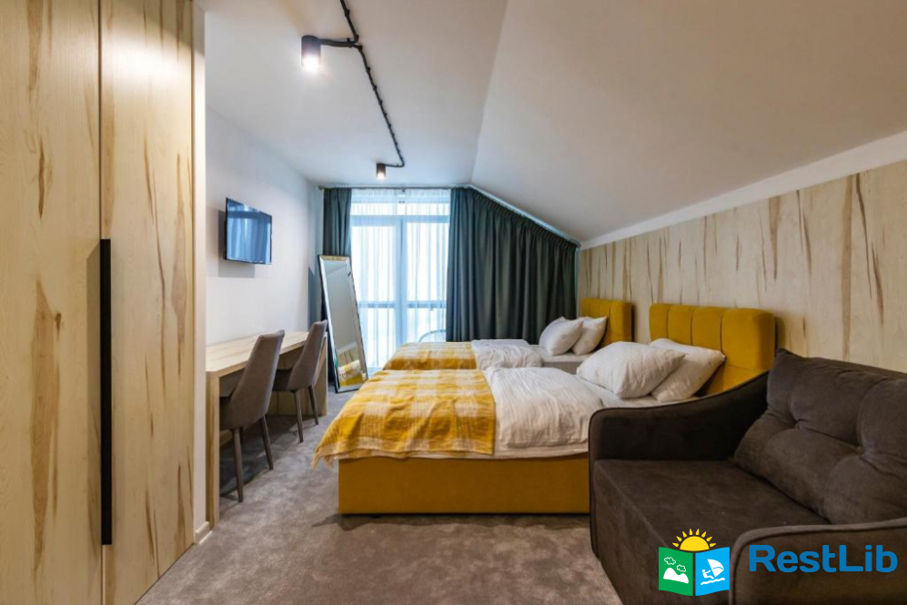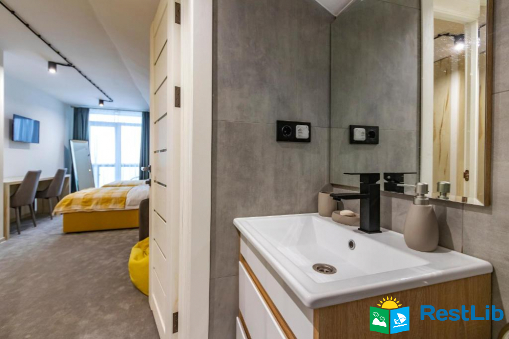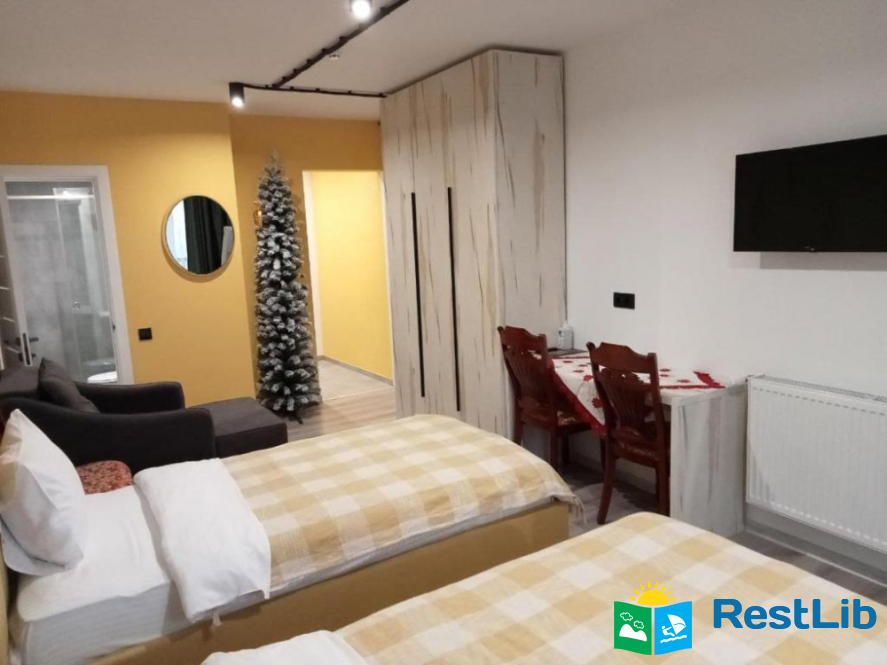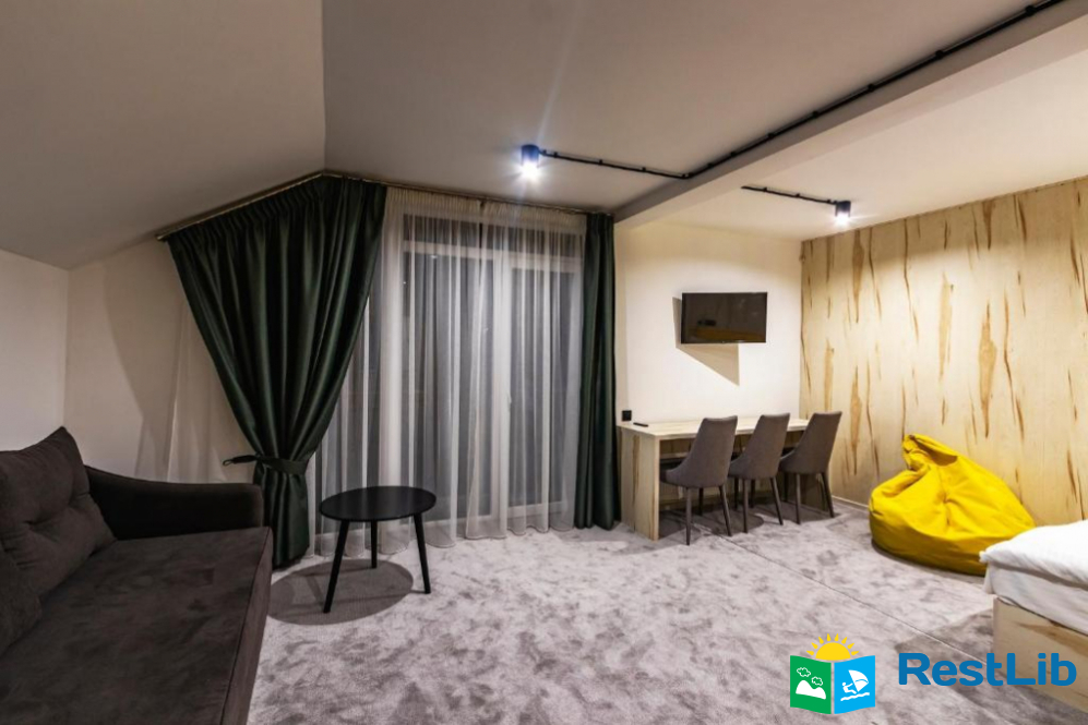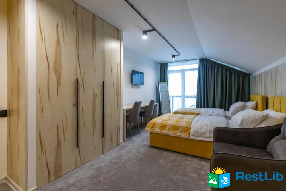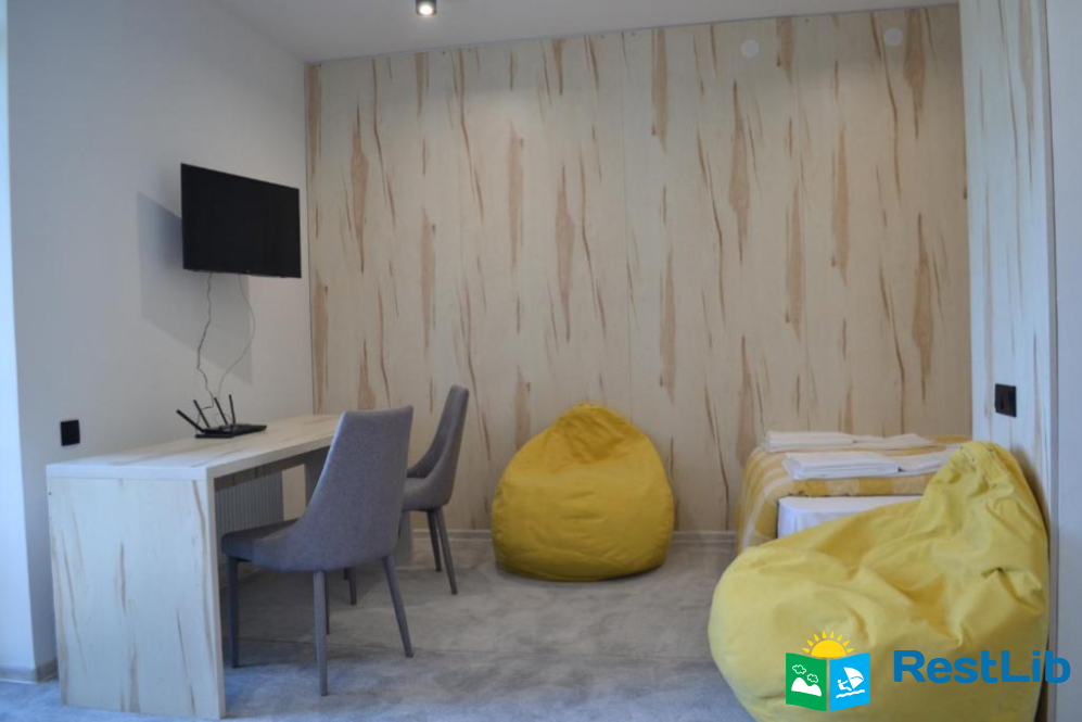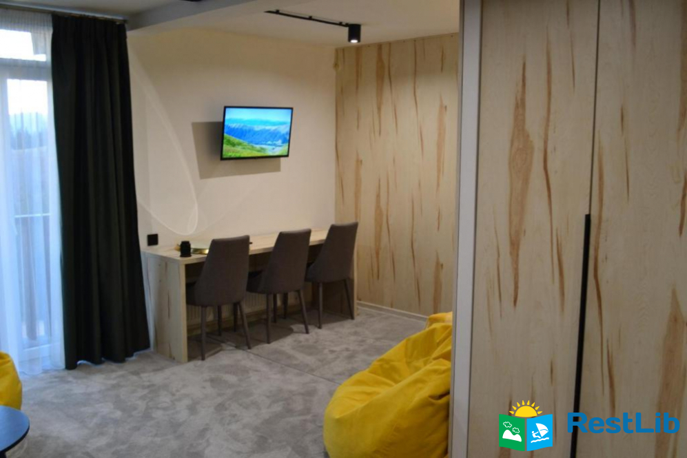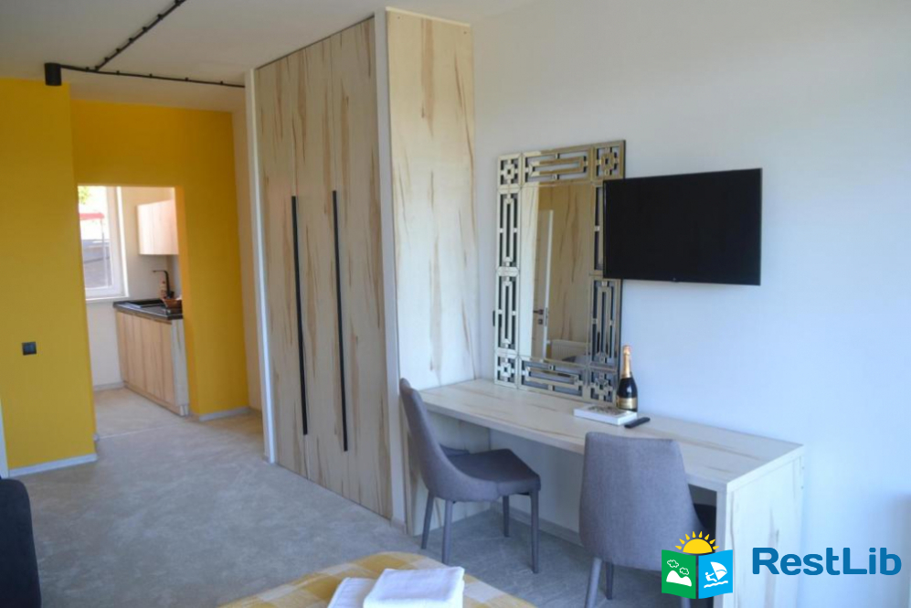 У номерах апарт-готелю є письмовий стіл, телевізор, шафа для одягу, ванна кімната та міні-кухня.