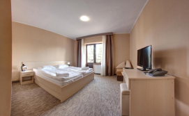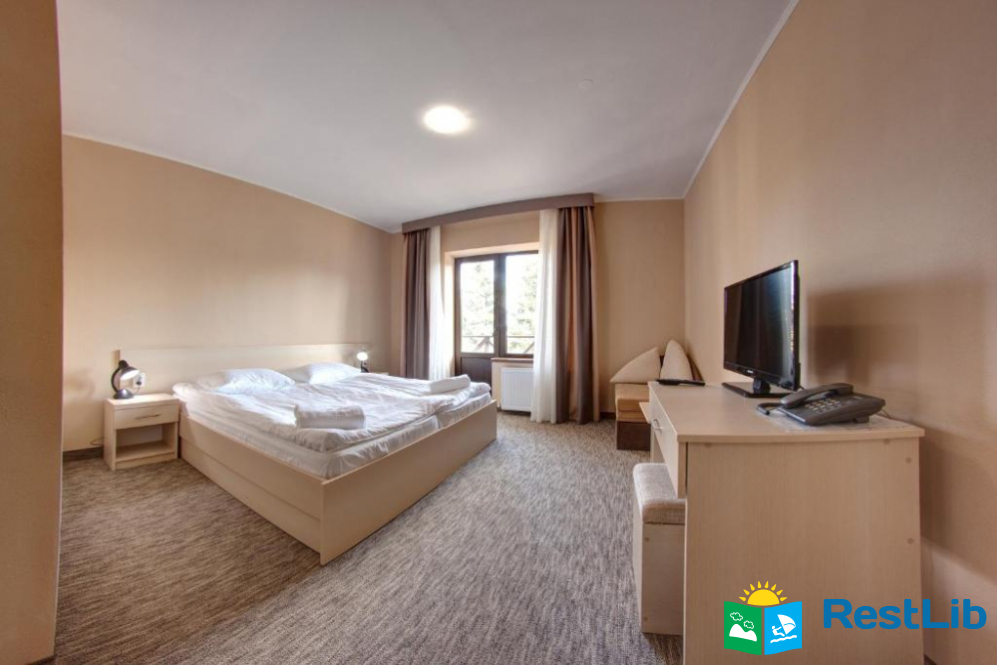 Номери оформлені в альпійському стилі. До послуг гостей затишний бар із каміном.