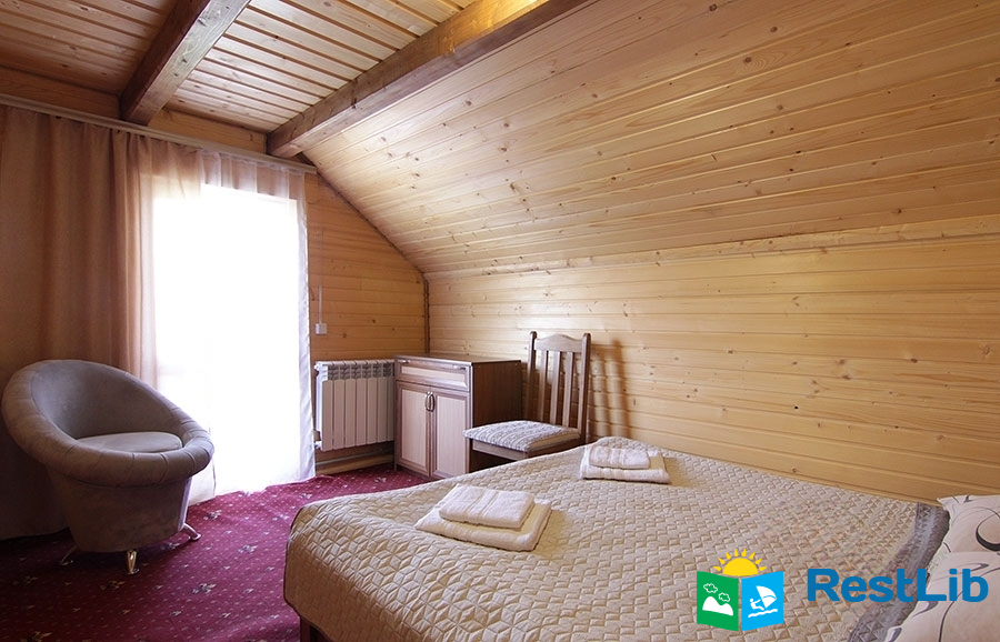 На другому поверсі (окремий вхід знадвору) — 4 двомісні номери (у кожному є двоспальне ліжко, вішалка для одягу, комод);