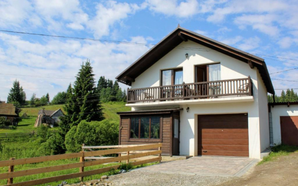 Двоповерховий котедж оточує неймовірний вид Карпат.
