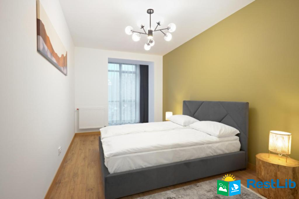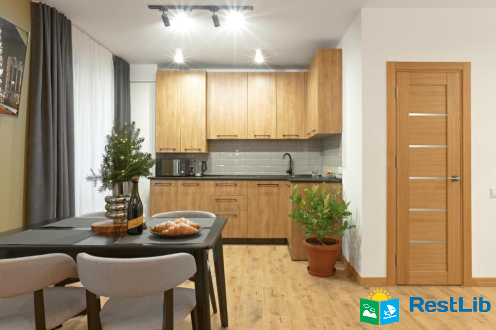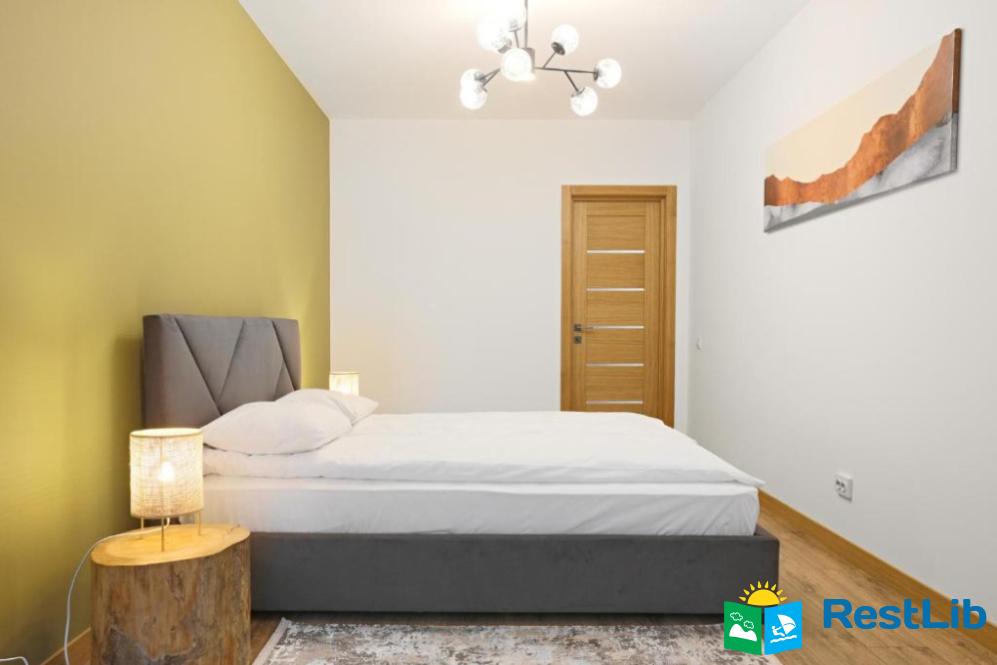 В апартаментах є 1 спальня, телевізор, обладнана кухня, пральна машина й 1 ванна кімната, балкон, вай-фай.