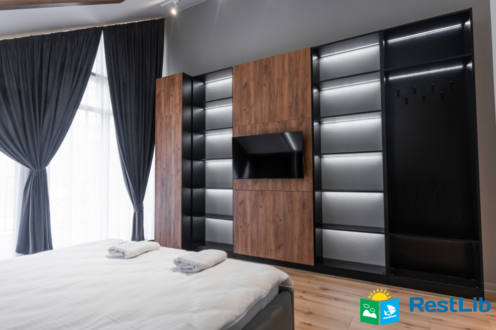 • 🛏️ 3 двомісні спальні (двоспальні ліжка, шафи/комоди, 📺 TV)