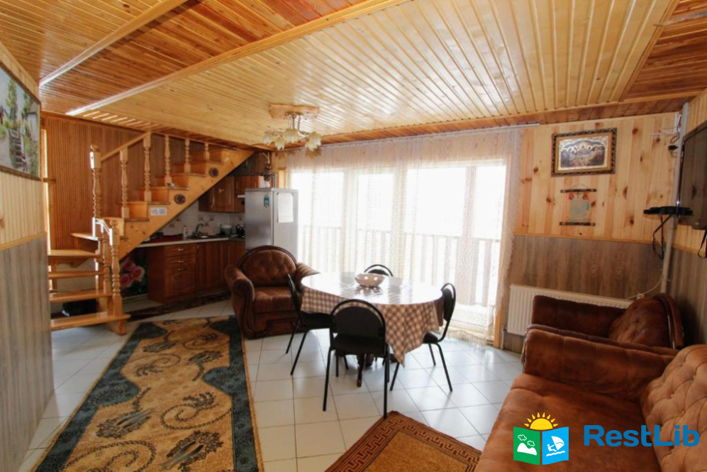 На першому поверсі є вітальня з балконом який виходить на струмок і на чудовий краєвид. Також на першому поверсі є кухня поєднана з вітальнею. У кухні є уся необхідна техніка. Усього у котеджі є три окремі спальні. Перша спальня знаходиться на першому поверсі. На другому поверсі є ще дві окремі спальні. У кожній спальні є двоспальне ліжко, власна ванна кімната. У кожній спальні на другому поверсі є балкон. До послуг гостей альтанка, обладнання для барбекю, а також безкоштовна вулична автостоянка. Усю територію покриває якісний інтернет.