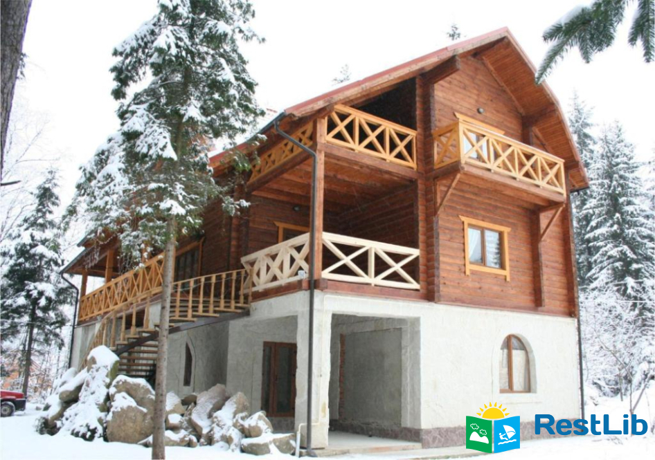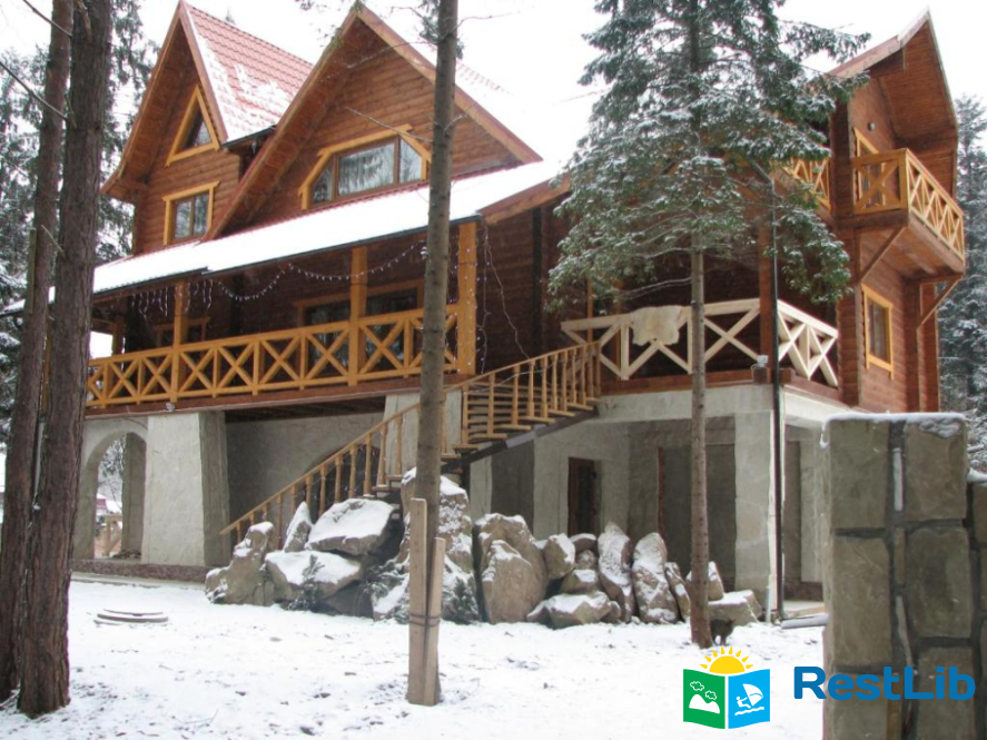 На стежці Довбуша - це триповерховий котедж розрахований на 16-20 осіб.