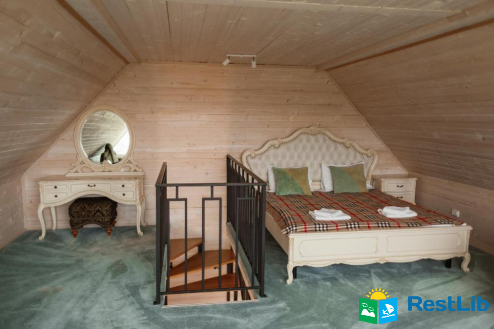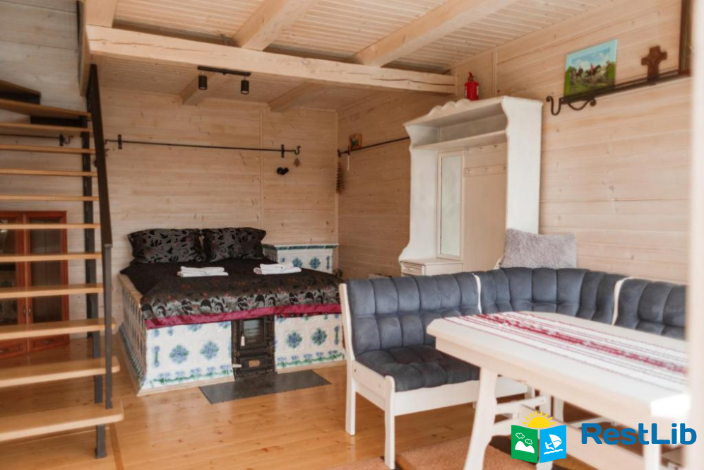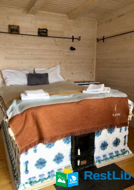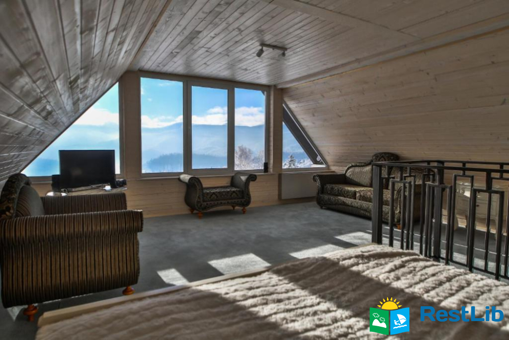 - Королівська спальня з ліжком-піччю та виглядом на хребет Горгани