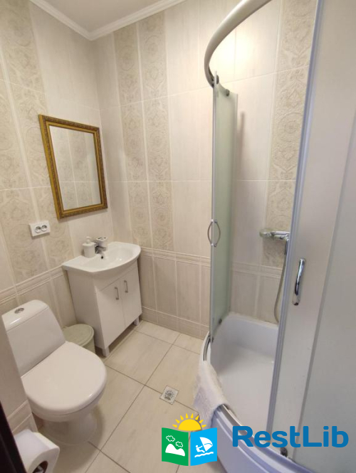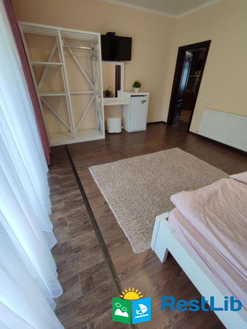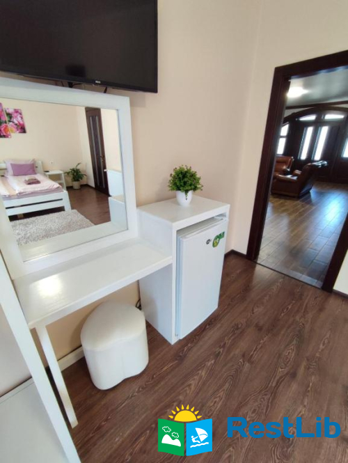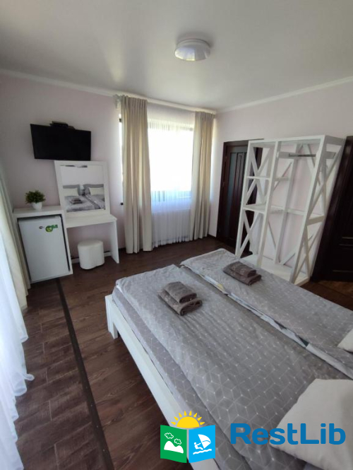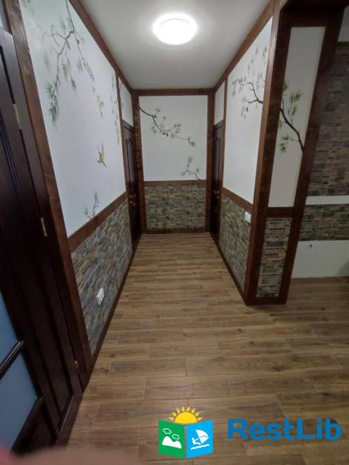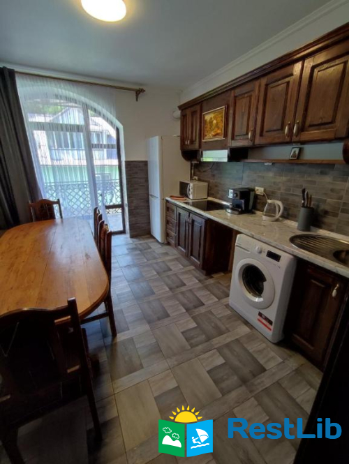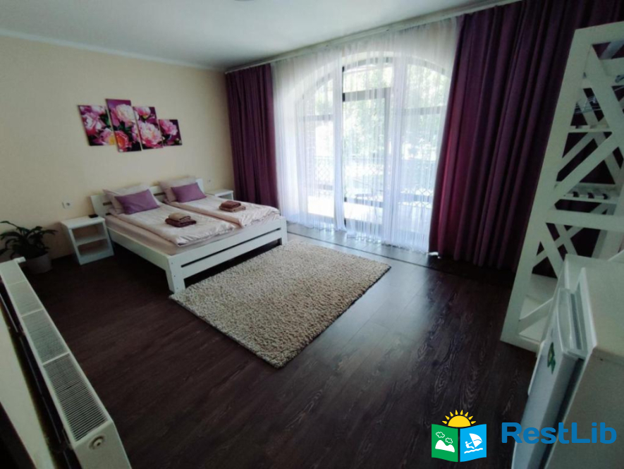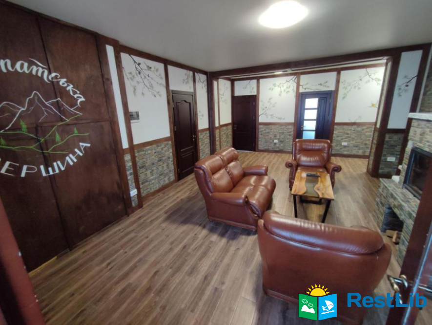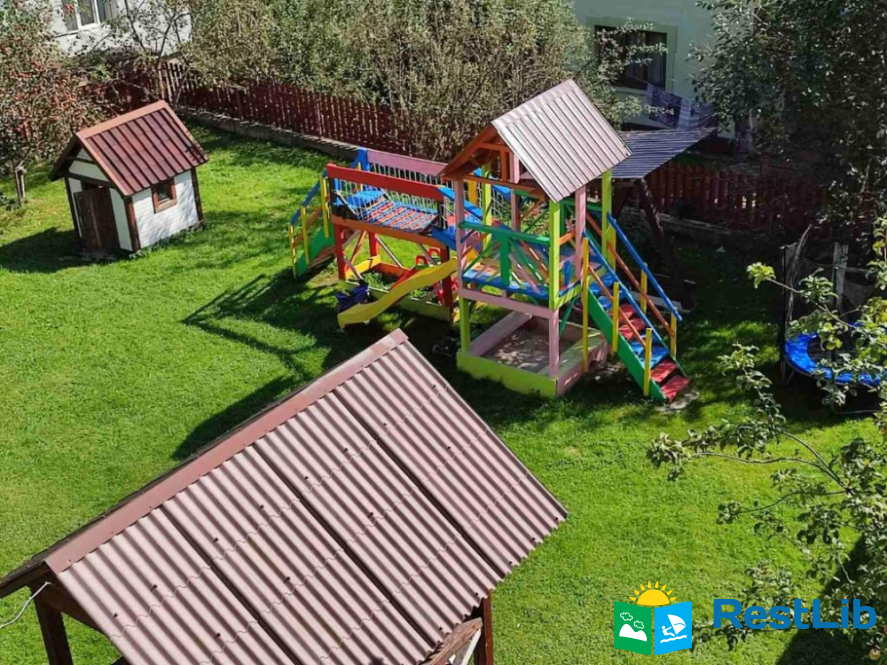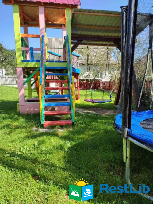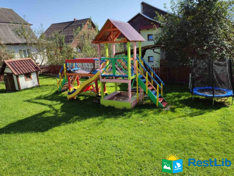 До послуг гостей цілий окремий поверх із окремим входом. На поверсі 4 спальні кімнати (із меблями та технікою: телевізори, міні-холодильники), в кожній свій власний санвузол (туалет, душова кабіна, умивальник та фен) та вихід на балкон (із столиком та кріслами для відпочинку), кухня із всім необхідним приладдям: холодильник, мікрохвильова піч, електрична плита, чайник, кавомашина, умивальник, набори посуди, шампури, сітка для грилю і т.д.(також є пральна машинка за окрему платню) та великий зал відпочинку із каміном. На території помешкання облаштовано дитячий ігровий майданчик, велика парковка та альтанка із мангалом (+дрова за окрему платню) та гойдалкою.