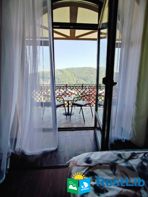 Із балкону відкривається чудовий краєвид на місто та гори.