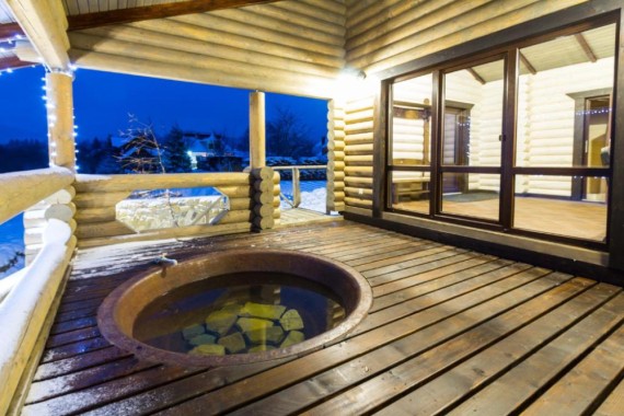 На території також є сауна та чан.